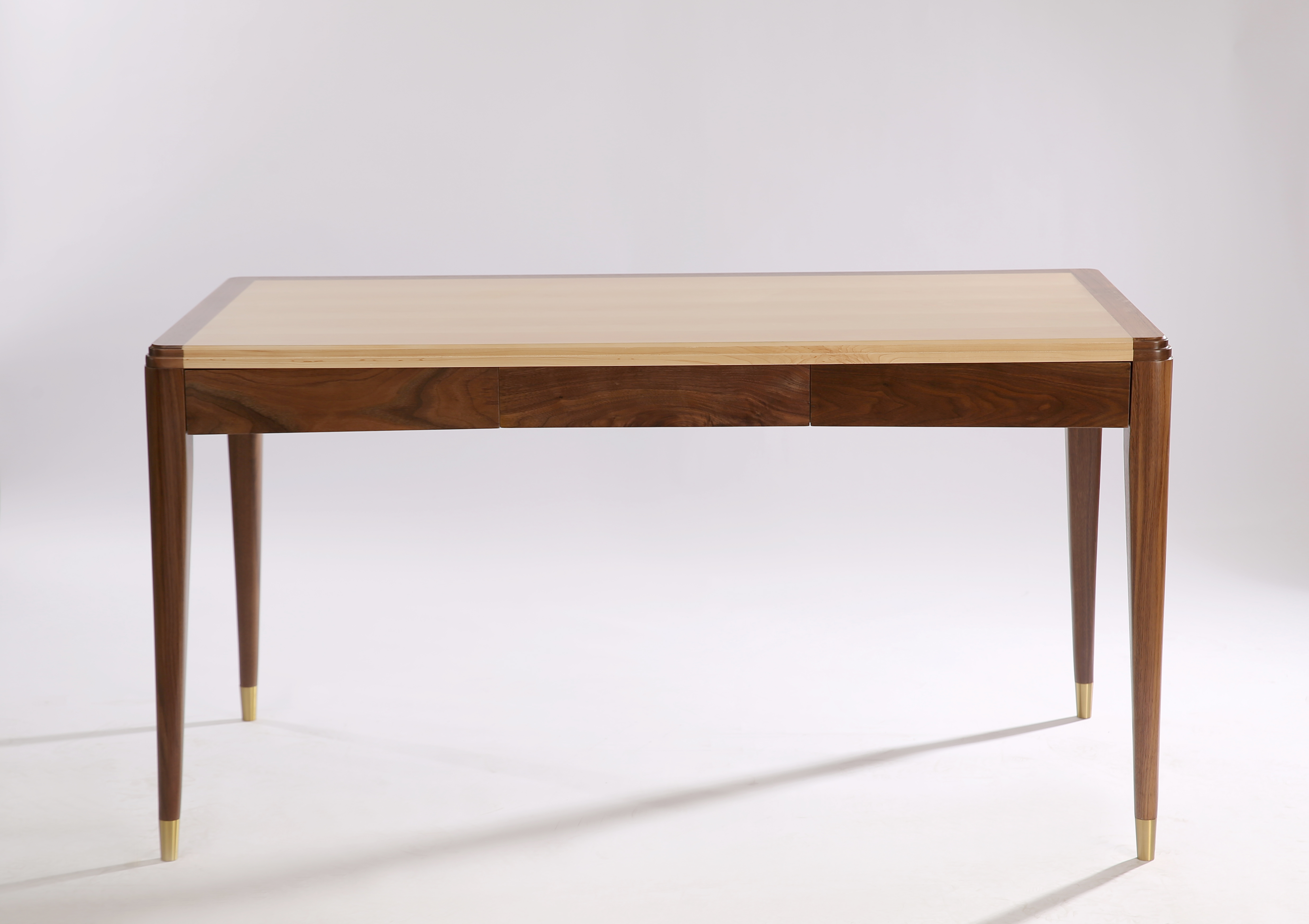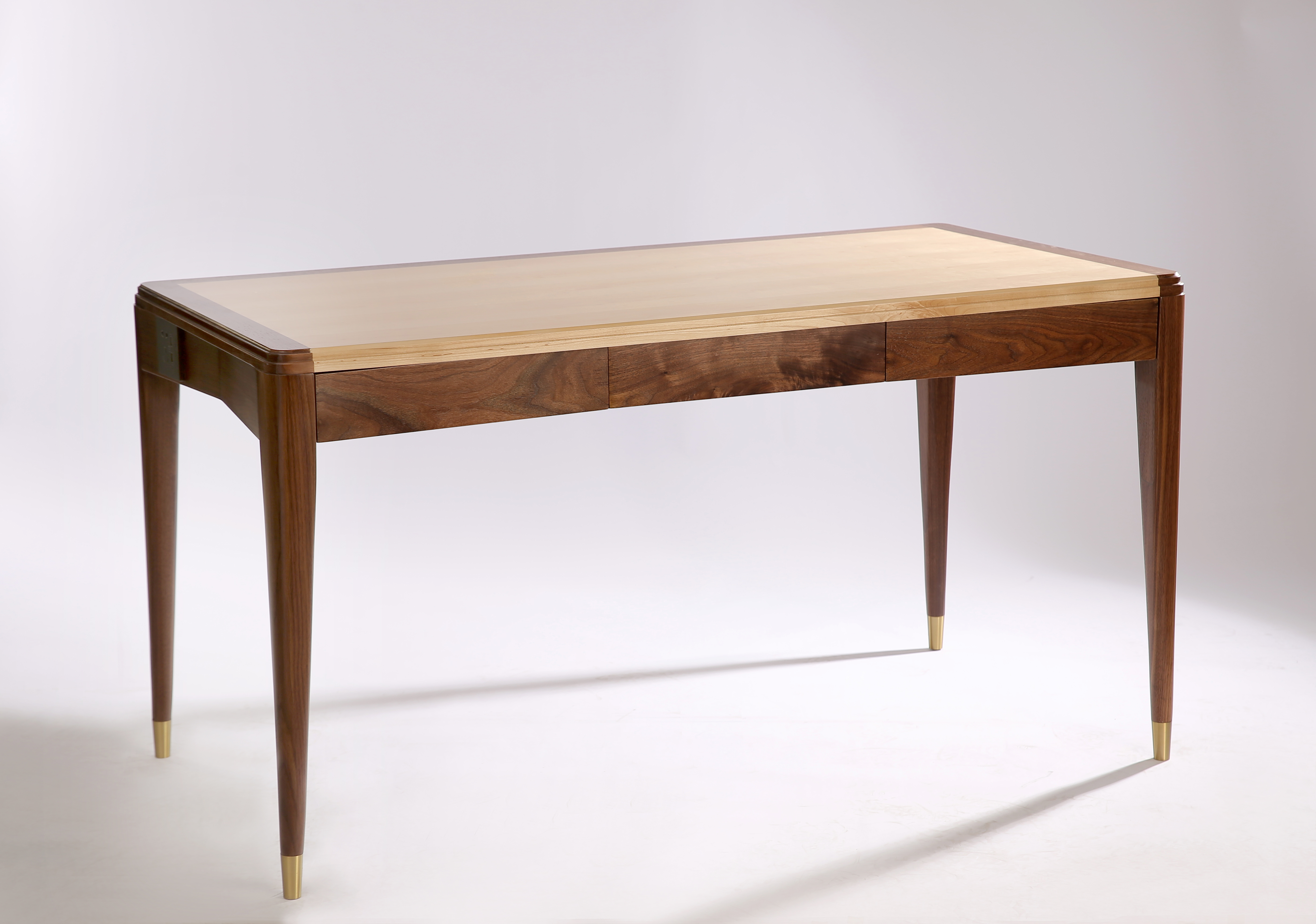 作品体现出简易美学的原理,工艺考究,造型优雅。自然木纹理办公桌共有三个抽屉,可以极大满足储物空间,并且在桌子的侧面还安置了电源插座,可以为移动设备及时、快速充电。它为年轻一代消费群体提供了兼具艺术美学、高品质工艺及实用性功能的产品。也满足了他们对轻松、舒适生活方式的需求。