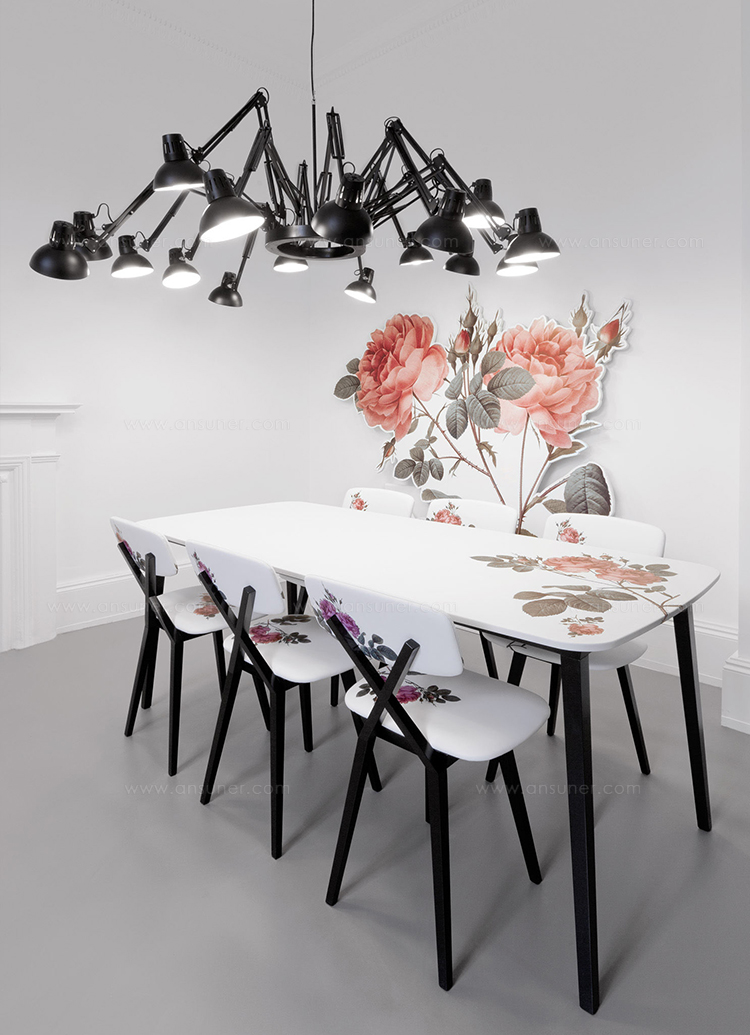 由Nika Zupanc设计的X椅子与标志性的“X”形状相得益彰,表现了背部支撑,座椅和靠背柔软的线条,丰富了新的经典花卉装饰。