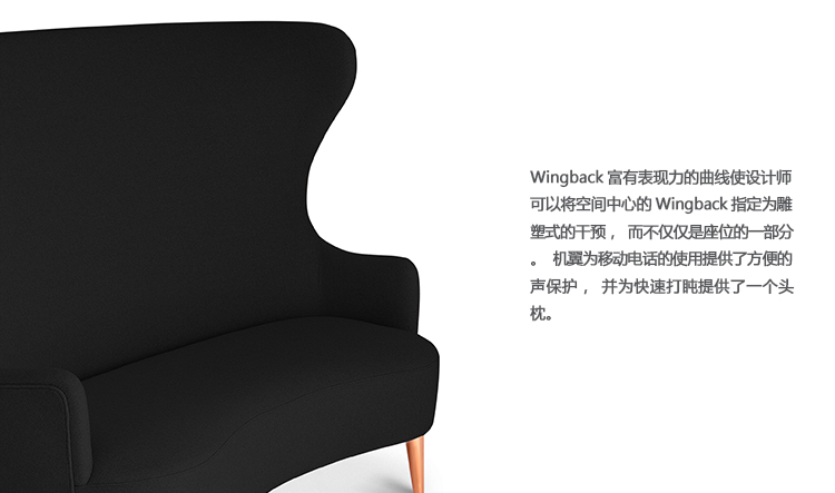 Wingback的灵感来自传统的17世纪Wingback和气球背部原型,是为Shoreditch House会员俱乐部开发的。它富有表现力的曲线使设计师可以将空间中心的Wingback指定为雕塑式的干预,而不仅仅是座位的一部分。机翼为移动电话的使用提供了方便的声保护,并为快速打盹提供了一个头枕。