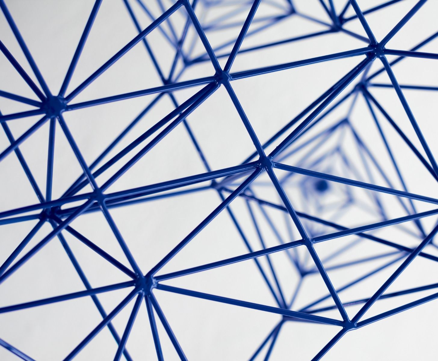 3mm直径钢杆的晶格功是最大强度的三角化-这是一种在纯朴素结构中的练习。最初的灵感来源于早期的电脑编程、电塔和桥梁的建筑模型都清晰可见这是自学结构工程的快乐练习。现在粉末涂在明亮的皇家蓝色的塔椅,虽然可能不是世界上最舒适的椅子,却是最可识别和独特的。