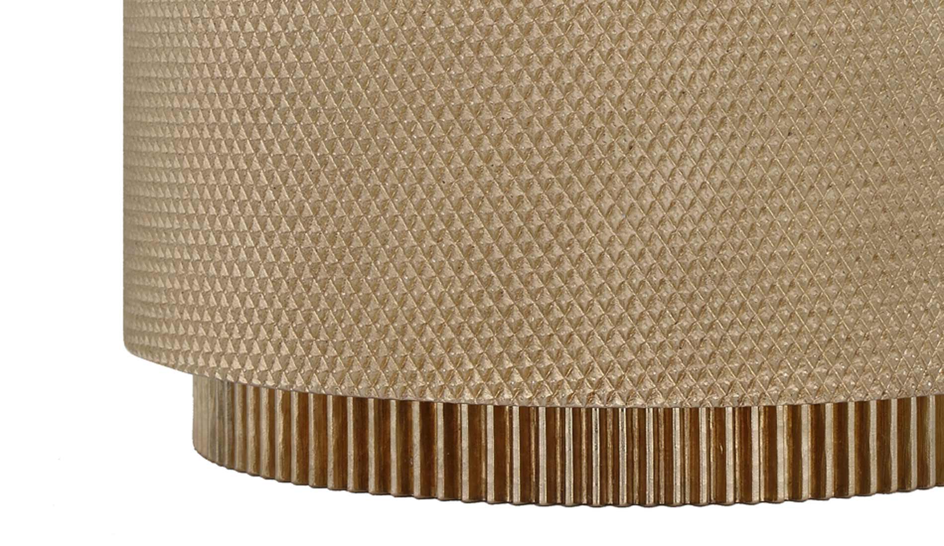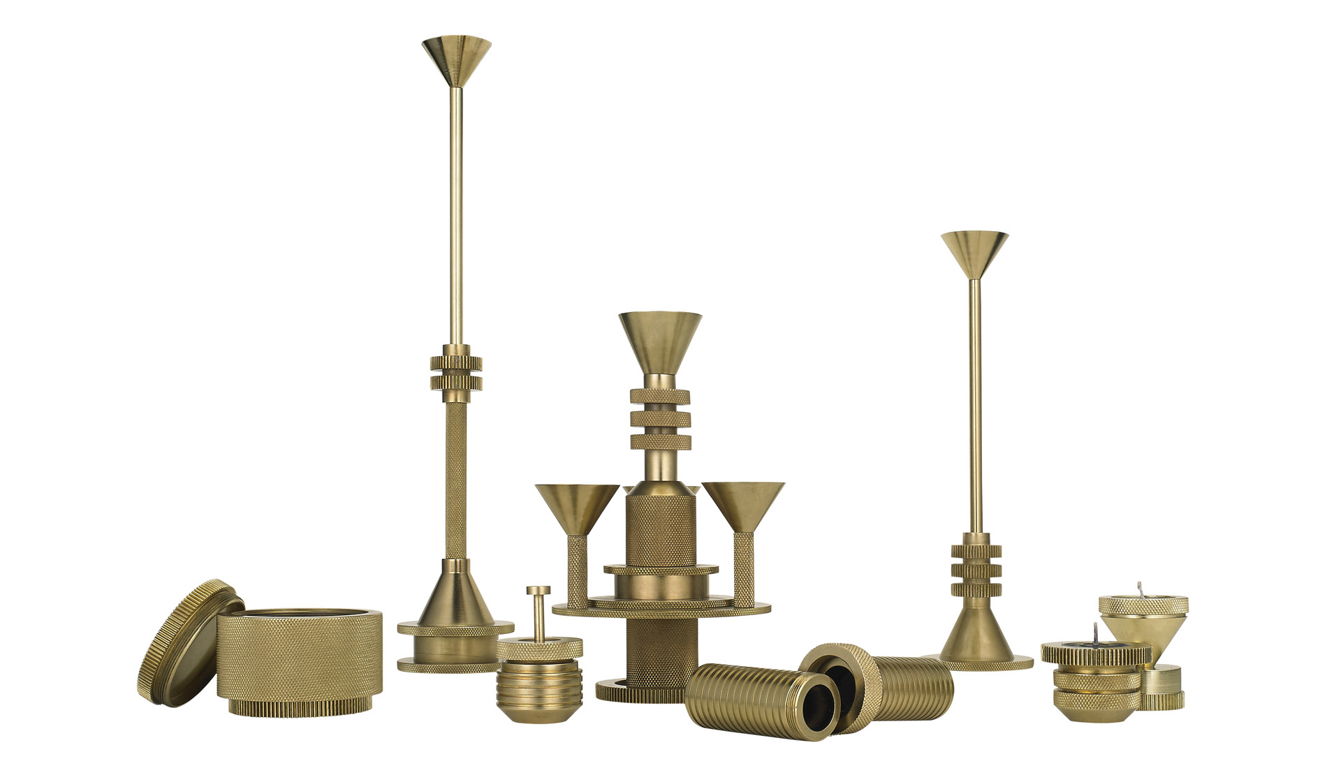 实心铝质生料块和管材在车床上进行加工,使用传统的精密机床进行切削和滚花。然后进行抛光,镀铜和抛光,最后用漆完成。标志深深地刻在底座上。