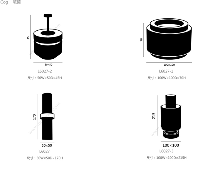 Cog 笔筒 系列尺寸/示意图