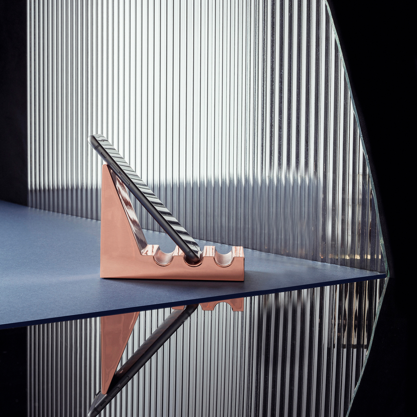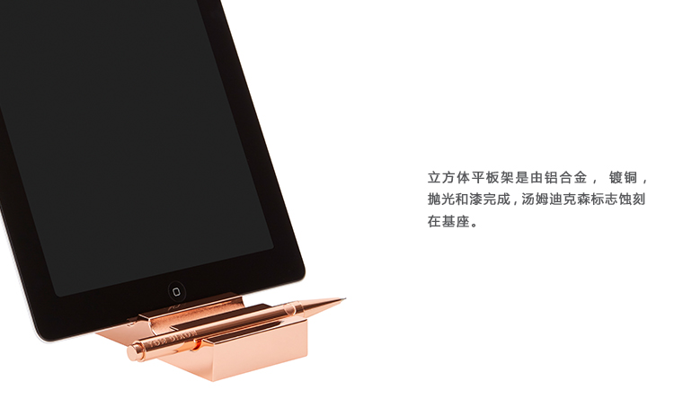 立方体平板架是由锌合金,镀铜,抛光和漆完成,汤姆迪克森标志蚀刻在基座。