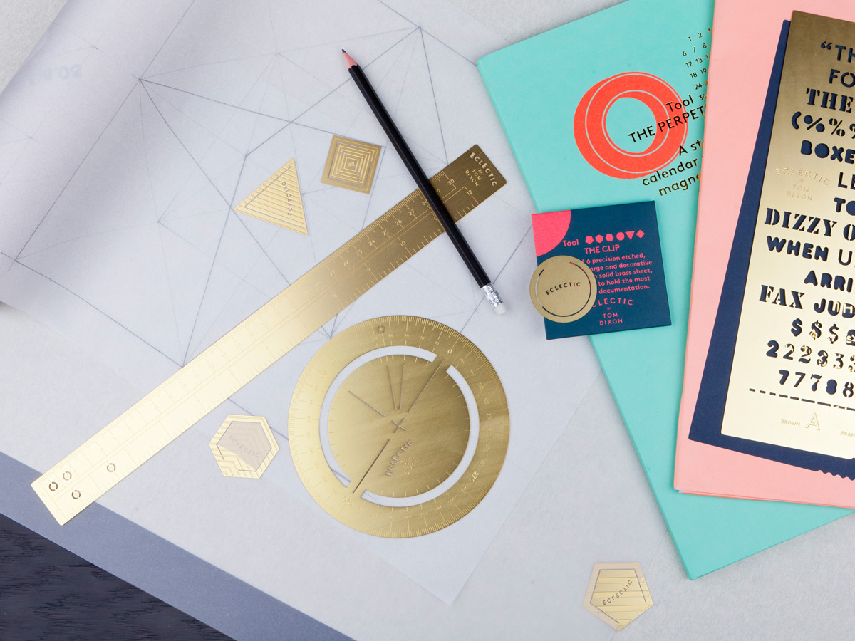 终极桌面工具。坚固的铜制尺子,刻有耐用的刻痕和我们的传统标志。
