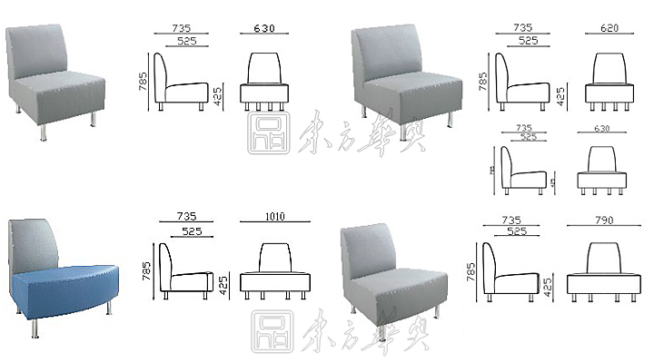 ※ 上图为跑道型的大堂沙发的组合分体结构图,由上面的4款沙发进行组合而成,也可以分开单体使用,比较灵活轻巧!
