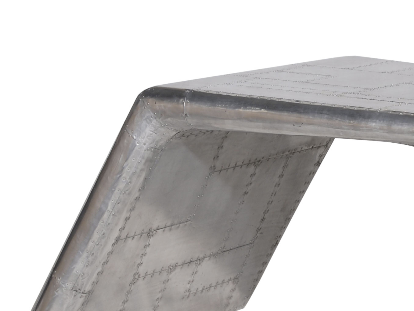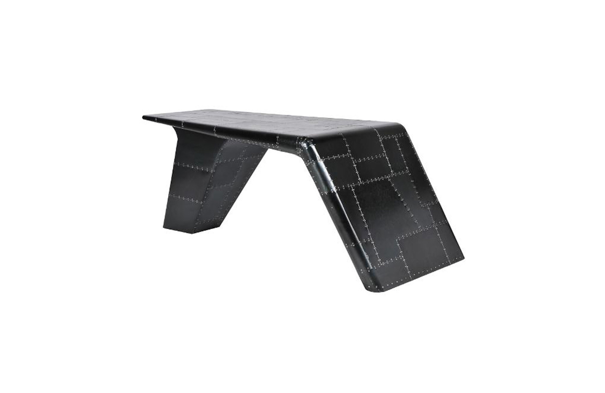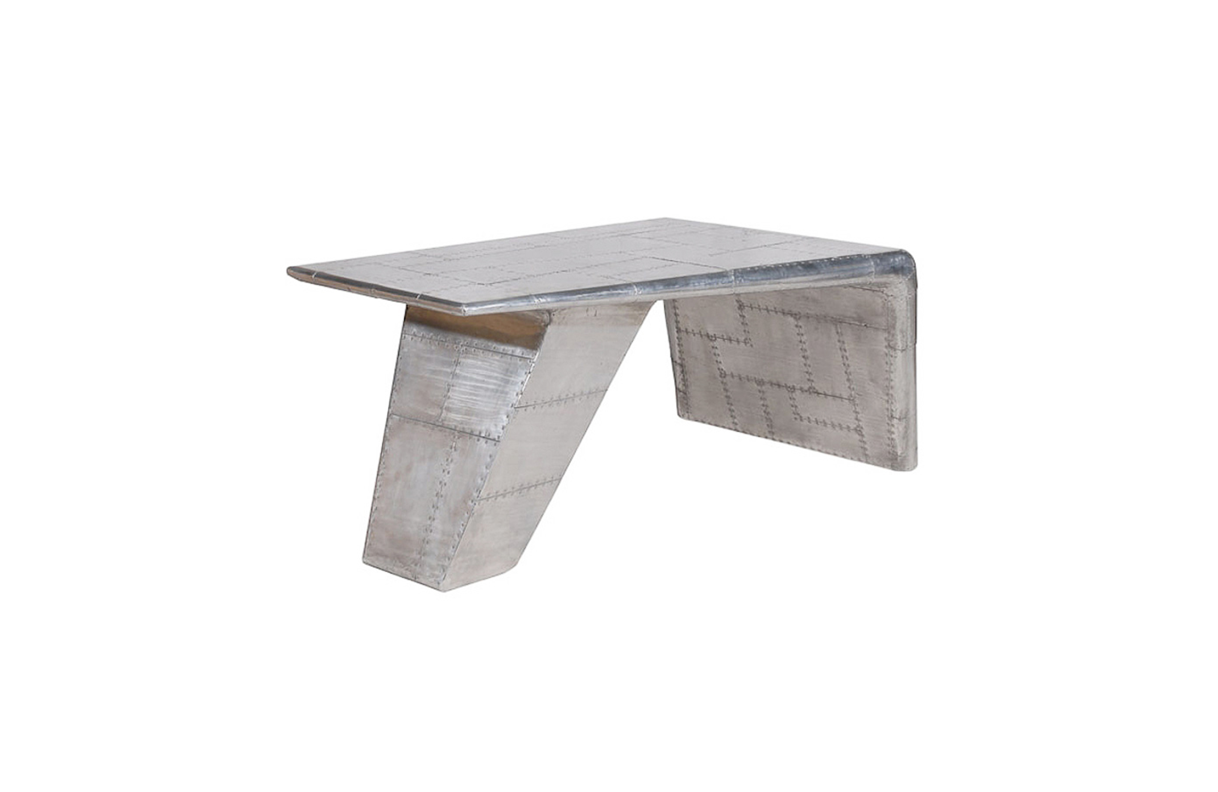 Aviator Valkyrie Desk(飞行员瓦尔基里台)由英国著名设计师Timothy Oulton设计,灵感来源于1960年北美航空的超音速轰砸飞机XB70,并以此命名。瓦尔基里台用铆接铝板制造,弧形线条符合空气动力学,有如一双机翼,通过手工艺进行打磨,进行磨光,座子整体造型有如喷火战机或黑色喷火式战斗机。