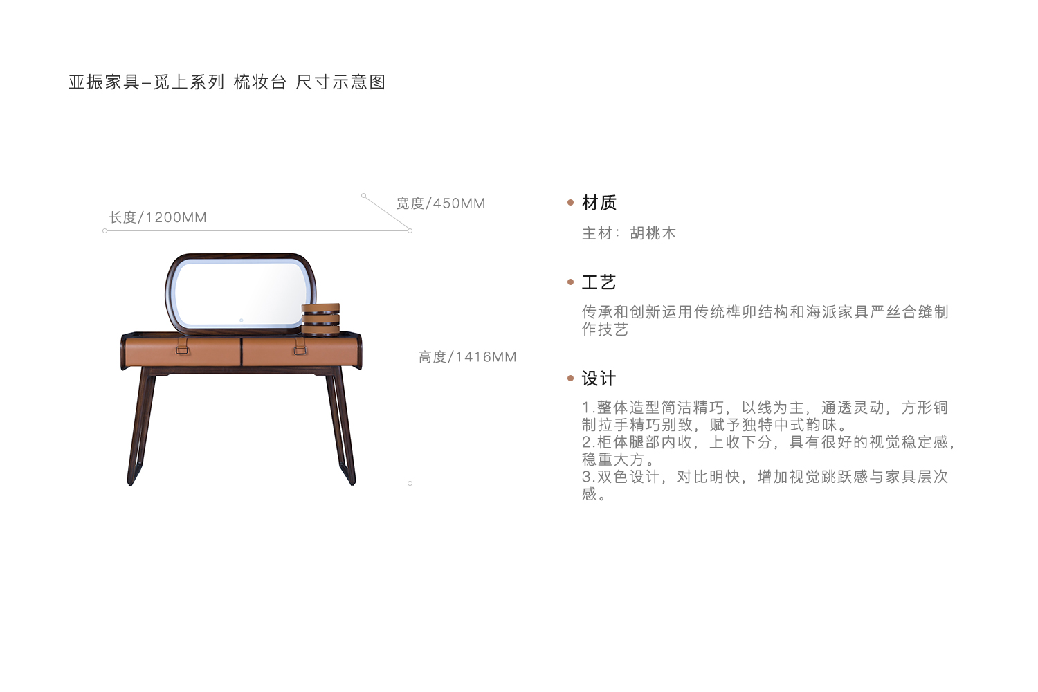 1.整体造型简洁精巧,以线为主,通透灵动,方形铜制拉手精巧别致,赋予独特中式韵味。 2.柜体腿部内收,上收下分,具有很好的视觉稳定感,稳重大方。 3.双色设计,对比明快,增加视觉跳跃感与家具层次感。