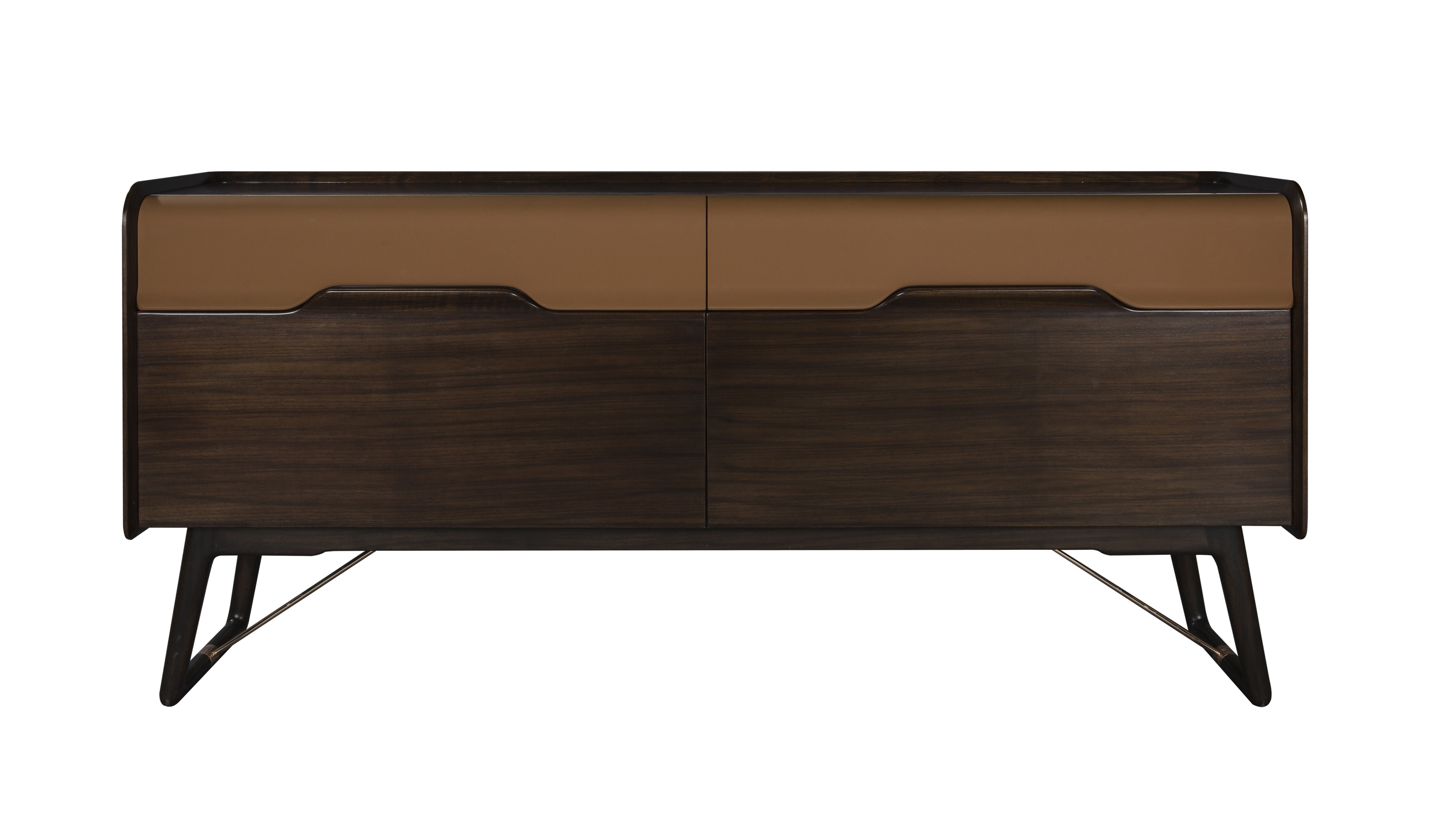 1.无拉手设计,精巧别致,创意十足。 2.柜体腿部内收,上收下分,具有很好的视觉稳定感,稳重大方。 3.双色设计,对比明快,增加视觉跳跃感与家具层次感。