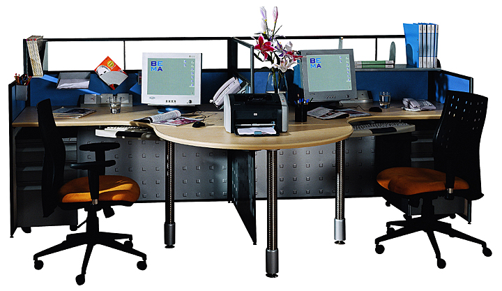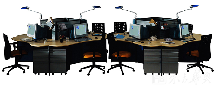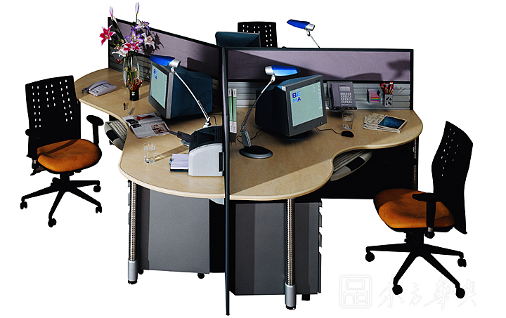 ※ 上图为两人位办公区,可以在中间加上半圆的台子,放置公共的资料使用,方便!