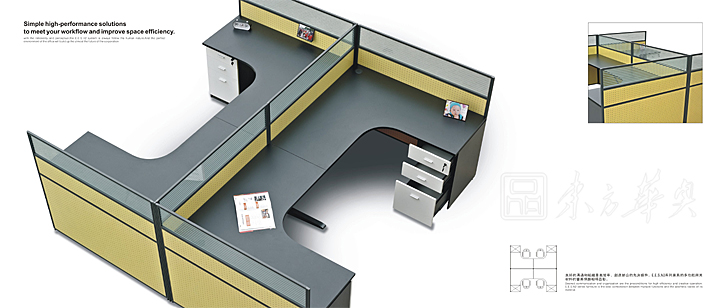 ※ 屏风90度和180度连接,整合四人位背对背型,简单,便于沟通和洽谈!