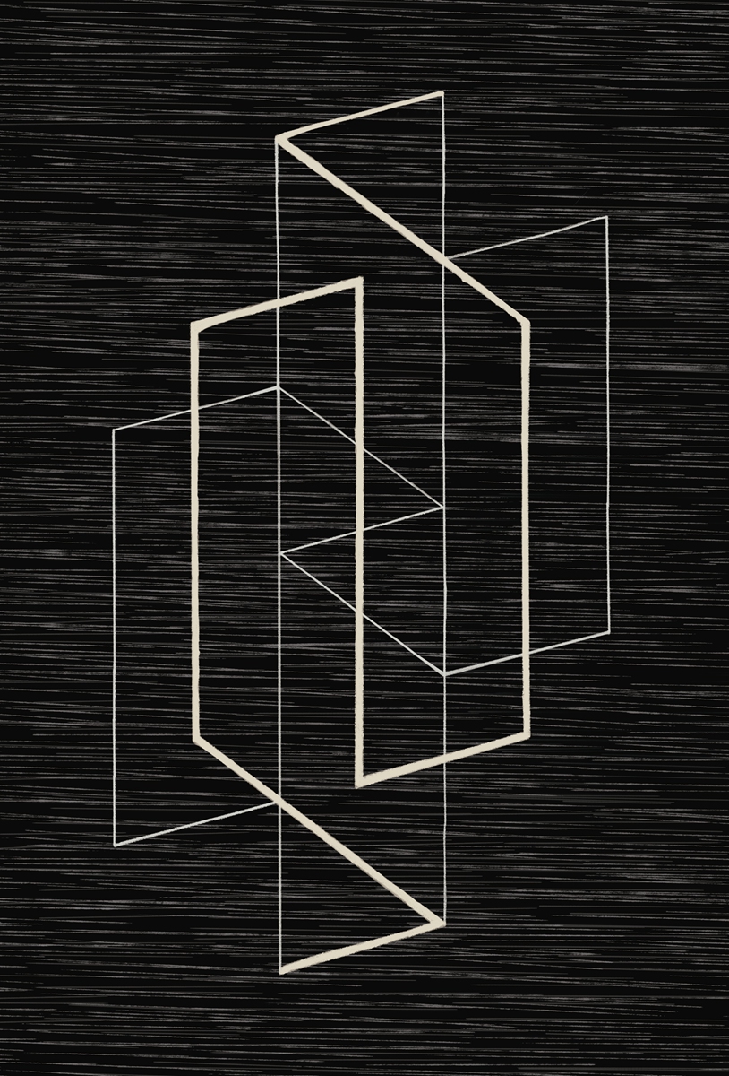 空间几何系列以点线面的构成作为创作主题,利用不同的构成方式,创造多样化的视觉效果,我们放弃了具体的内容和情节,突出运用这些纯粹的绘画语言来表现艺术形式的纯粹美;点、线、面和构成手法,就像是大厦的基石一样,看起来毫不起眼,但力量却无比强大,它是我们不断探索的源泉和情感表达的桥梁