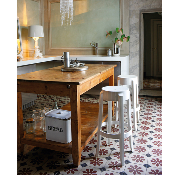 "Charles Ghost Stool(查尔斯鬼凳),由鼎鼎大名Philippe starck(菲利浦·史塔克)设计;进口高透明度工程塑料PC一体成型,简洁新潮,高净度透明材质很好的表现出产品的时尚和百搭,可以毫不夸张的说,几乎配任何装修风格他都很灵,而且显品味,空间感也很好,如果你的吧台空间不大的话,放这款吧椅视觉很通透,不占地方。"