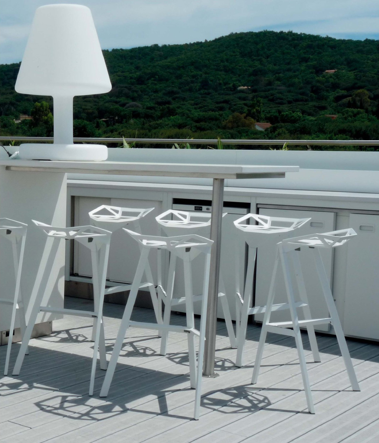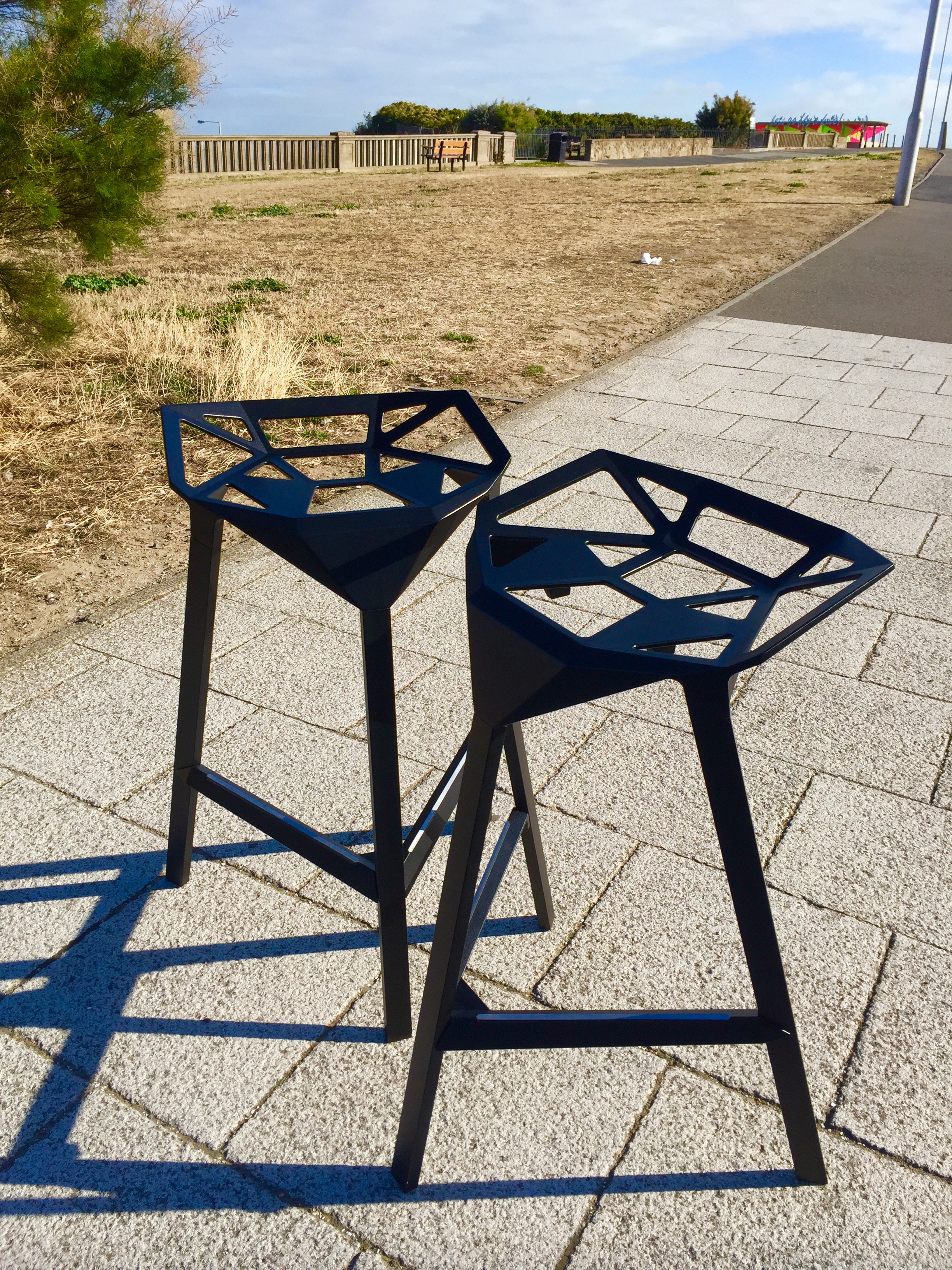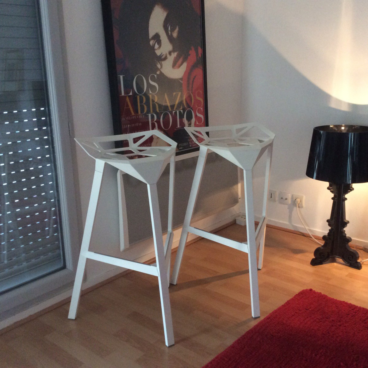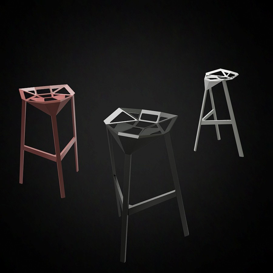 Stool One(几何吧凳/变形金刚吧凳)是德国设计师Konstantin Grcic(康士坦丁·葛切奇)的设计作品。 Stool One(几何吧凳/变形金刚吧凳),镂空钻石的坐面设计,棱角的触感更时尚大气,视觉上的冲击,艺术的价值,无论搭配什么样的环境,都是显得那么融入,那么个性。是现代风格酒吧、家庭吧椅理想的选择,坐感舒适,用材讲究,超现代风格,是一把艺术性与实用性相结合的经典。