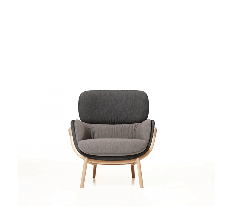 Elysia Lounge Chair(爱丽霞休闲椅)是意大利著名设计师Luca Nichetto的经典作品。Elysia Lounge Chair是高级木工和精细剪裁的完美结合。实木脚架精妙地固定着坐垫和靠垫,并巧妙的隐藏在衬垫里,外露的脚架同时展示了高超技艺和木材的优质。制作采用榉木/水曲柳/胡桃木/实木脚架、内部填充高密度沙发棉、表面扪进口羊毛绒或麻布或PU或真皮。