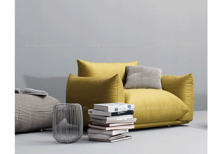 "marenco sofa系列沙发由设计师Mario Marenco在1971年所推出,Arflex公司出品,有单座,双座,三座,和五座组合形式。这款经典的沙发线条经典,舒适度饱满,成为摩登家居用品经典作之一。外型以简约细腻的北欧设计为方向,轻盈的金属脚架与薄型扶手,在厚薄粗细之间,视觉比例的层迭丰富,融合义式沙发中柔软舒适的元素,靠垫内衬高密度泡棉,兼具支撑性与松软度。这套沙发采用革命性的方式组合,垫子及扶手都是独立的部分。枕头是挤压钢管的金属框架,提供了刚性和耐用性。胶合板基地加上纤维覆盖。制作采用防霉实木内框架、进口羊毛绒布、内部填充高密度沙发棉,保证了高品质的奢华与舒适。