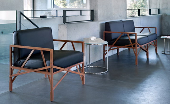 瑞士设计师Atelier Oï为Röthlisberger设计的一款沙发系列名为“Allumette(火柴)”,有单座、双座和三座。ALLUMETTE 沙发的醒目外观是归因于其来自阿鲁拉豆木树的硬木雕刻镂空框架设计。在这里,压力和反压力接受负荷的相互作用。优雅和独创性与稳定性相结合。其金属般基调的非漆木材经过打磨、抛光处理,允许其感性的存在,以充分发展。坐垫及靠垫内部填充高密度海绵、表面扪进口羊绒布或麻布或PU或真皮,提供高度的舒适感。