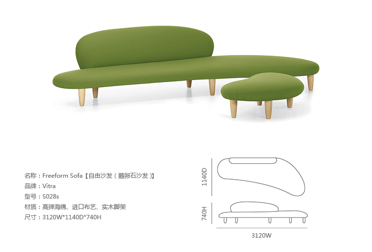 鹅卵石沙发( Freeform Sofa)是由著名设计师野口勇设计的。这款沙发具有圆润的弧形,舒适的坐感,独特的设计等特点,这些特点让鹅卵石沙发成了家具界非常出名的产品之一;形体优美又充满活力,是现代、休闲、时尚的家具用品的不二之选。