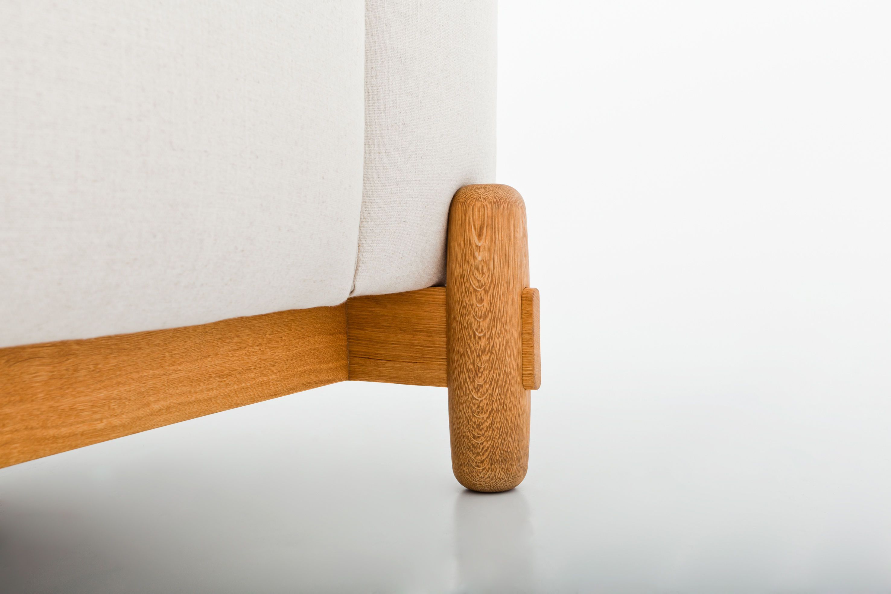 块辅以简单的构造形态的独特结构的腿,这是实木做的。 这种关系让沙发上强烈的个性,同时使其保持谨慎的家具。