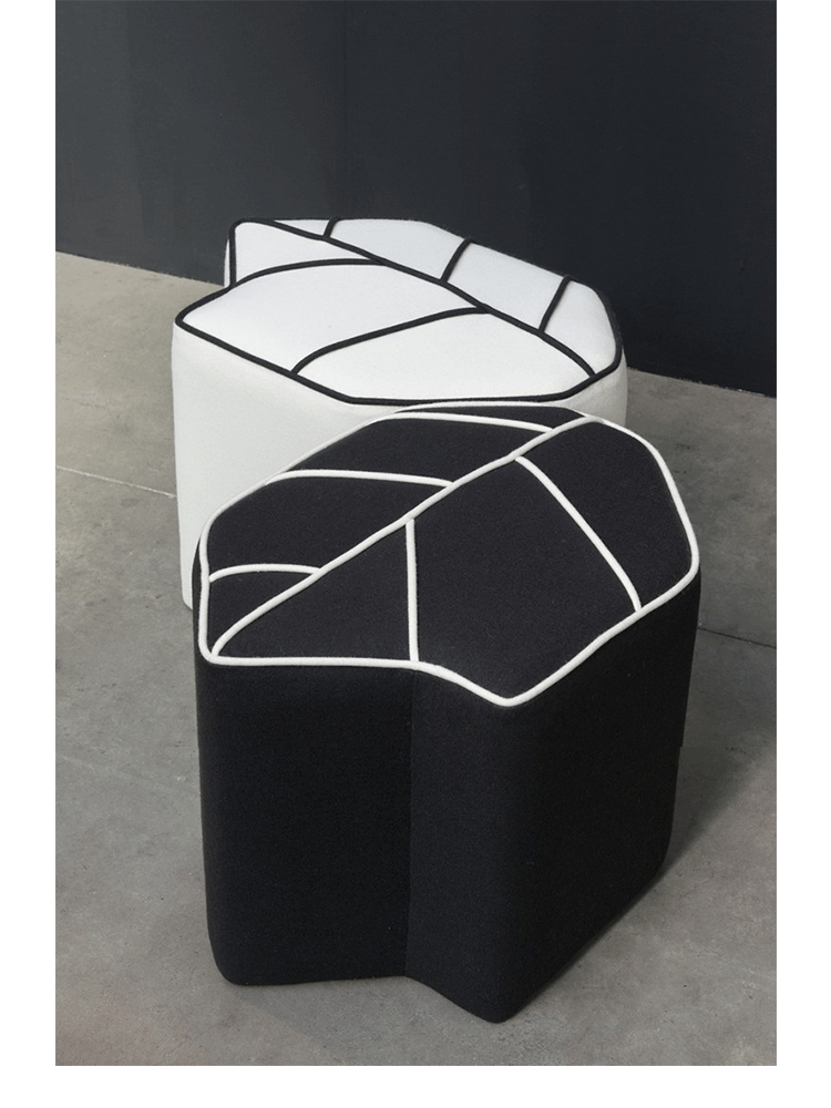 Leaf Pouf(树叶墩)是设计师Nicolette设计的作品。大多数的脚凳都只注重于形式和形状,很少能兼具椅子的功能。Leaf Pouf(树叶墩)不仅仅是一个脚凳,同时它也是一个极具吸引力的座凳,由经验丰富的工匠精心制作,精美别致,用料高级,采用高级Kvadrat羊毛(皮革)扪面。他们可以单独使用,作为一个独立的个体,在任何地方都是非常特别且令人印象深刻的,不会淹没在环境中。他们也可以多个组合,从而形成一个沙发床,还不失协调性和美感。无论用在任何地方,他们都可以满足您的创意,想法,发挥您的想象力自由组合。
