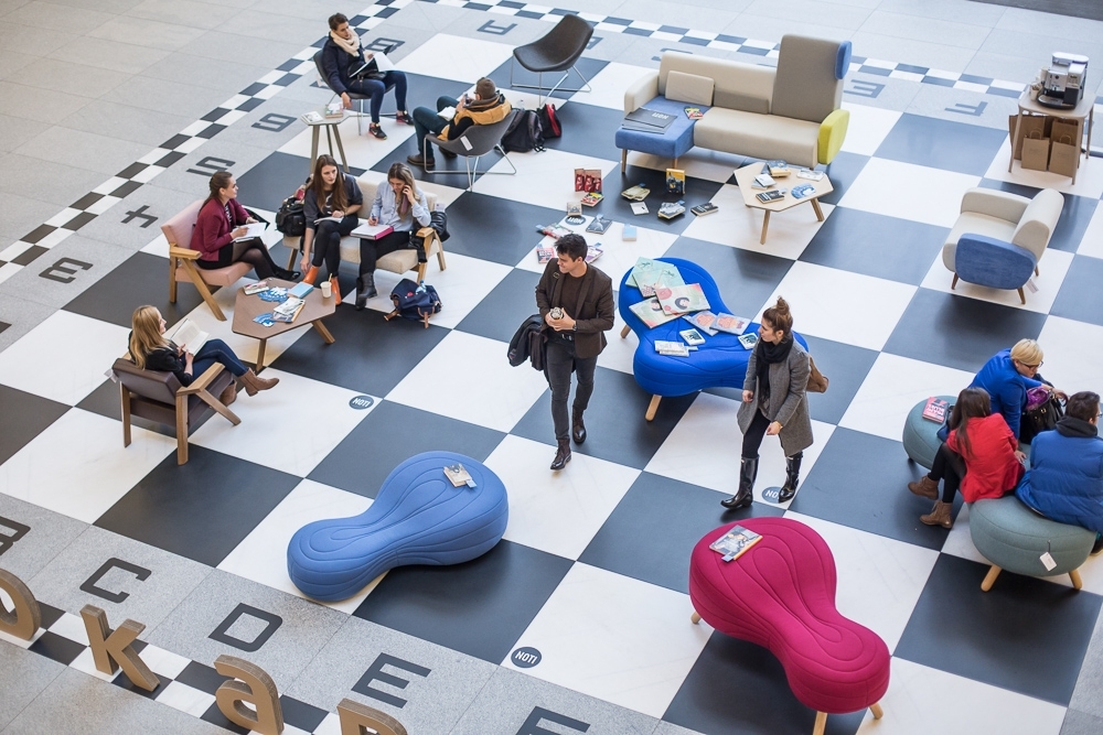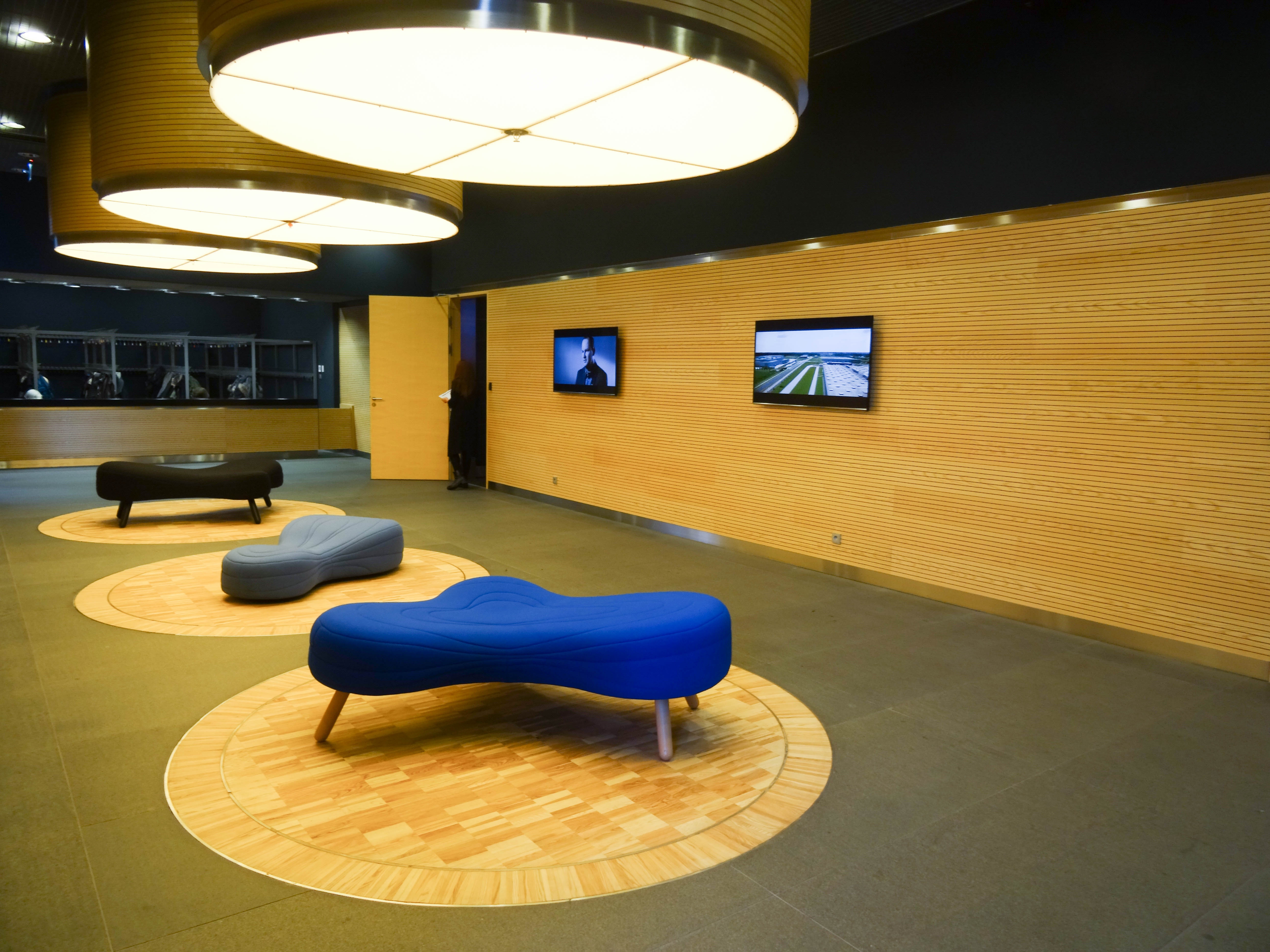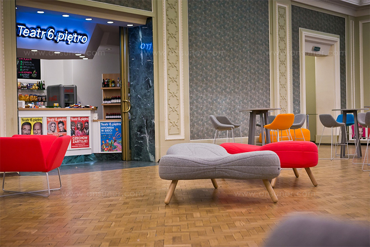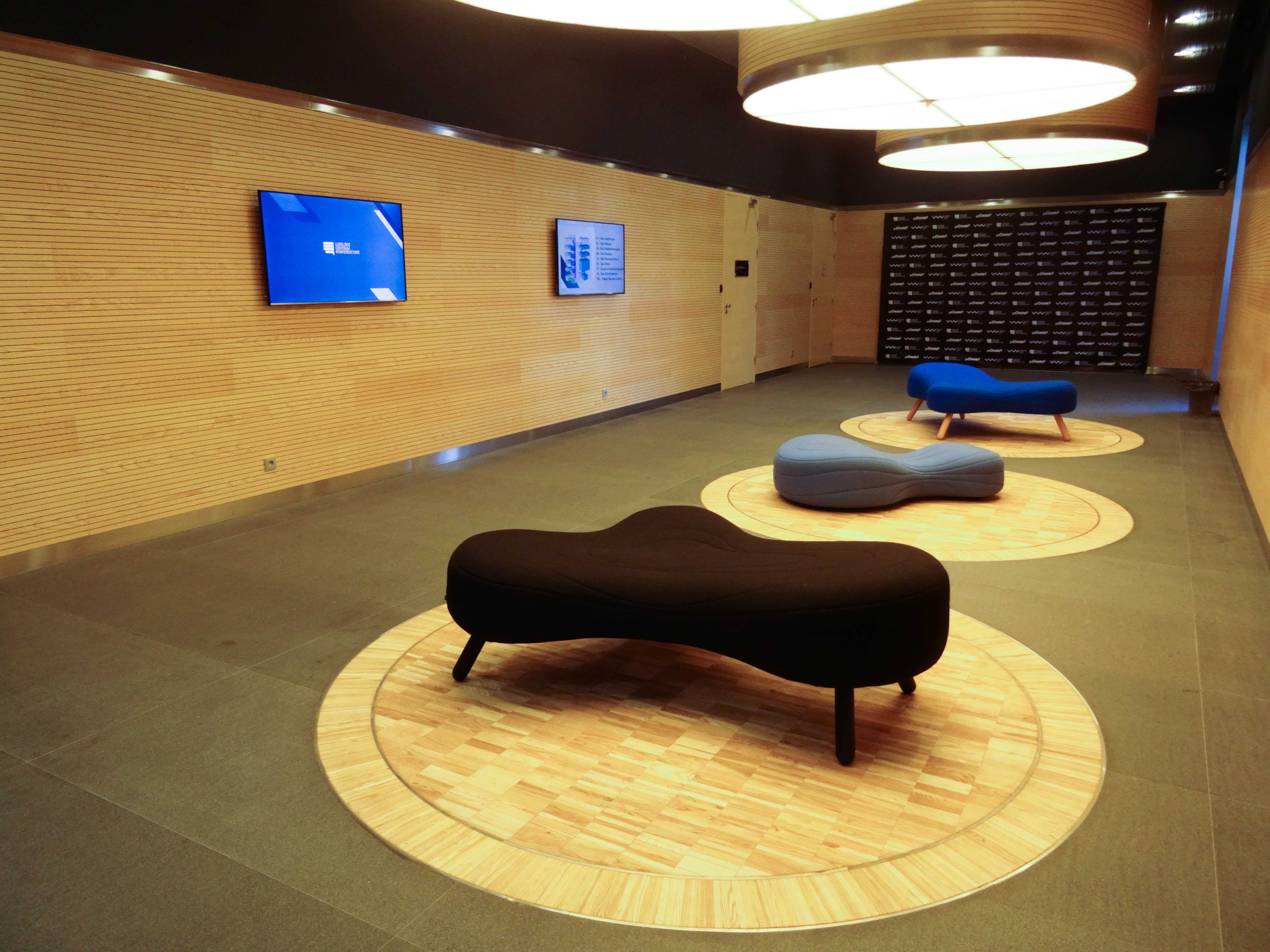 不规则的、变形的沙发形式允许创造一个不寻常的公共空间。这些模块是用木制的腿,小的隐藏的腿,这样沙发看起来就像是直接躺在地上,或者悬挂在绳子上,给人一种漂浮在空中的感觉。设计的主要特点是有可能在功能和外观方面提供不同的基础。这些座椅有两人位和三人位型号可供选择。