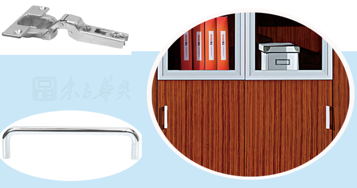 ※ 上图的文件柜细节展示图,木析纹理和质感表现得更为淋漓尽致,色泽自然,此款文件柜采用的是锌基合金一字拉手,铝合金挂衣通,镀镍暗门钢制铰链!