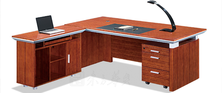 ※ 此款班台木纹明晰,配以银色底漆为点缀,独特的线形设计韵含了一种灵气,使人眼前一亮,木制键盘架,机箱架,柔和了您办公时的种种所需,达到一体多功能配置,节省空间,增加使用和实用性,附助储物装置方面则备有移动式活动柜。