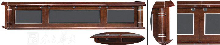 ※ 上图为主席台细节展示图,可选配话筒等配件,优美的弧形主体,大圆柱的护脚,木质油漆结构,进口油漆,国内首创内增加纳米银抗菌材料。