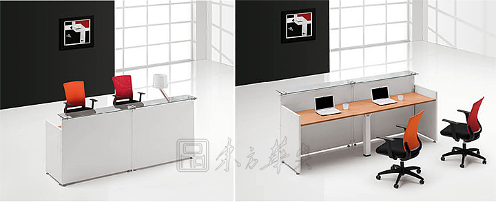 ※ 上图为前台背面图,直型台面,简洁而富现代感的外观,搭配多元化的桌面及配色设计,令空间富有灵动的变化;精致、稳固的金属元素是其品质的追求;可以轻松、经济地设计和配置属于您时尚的工作环境。