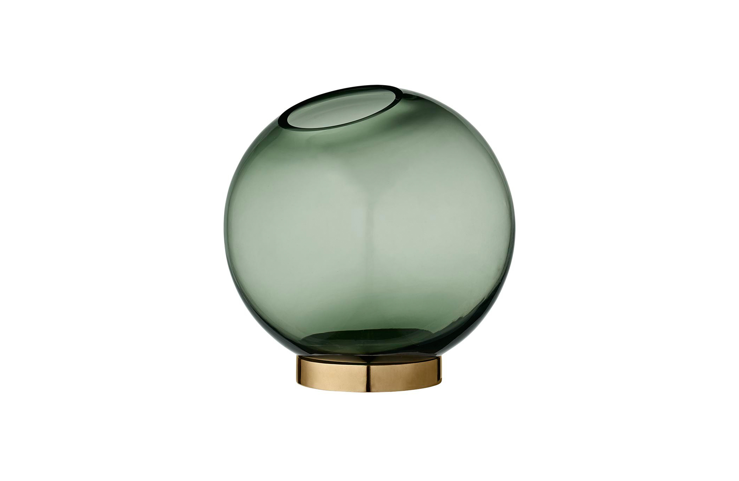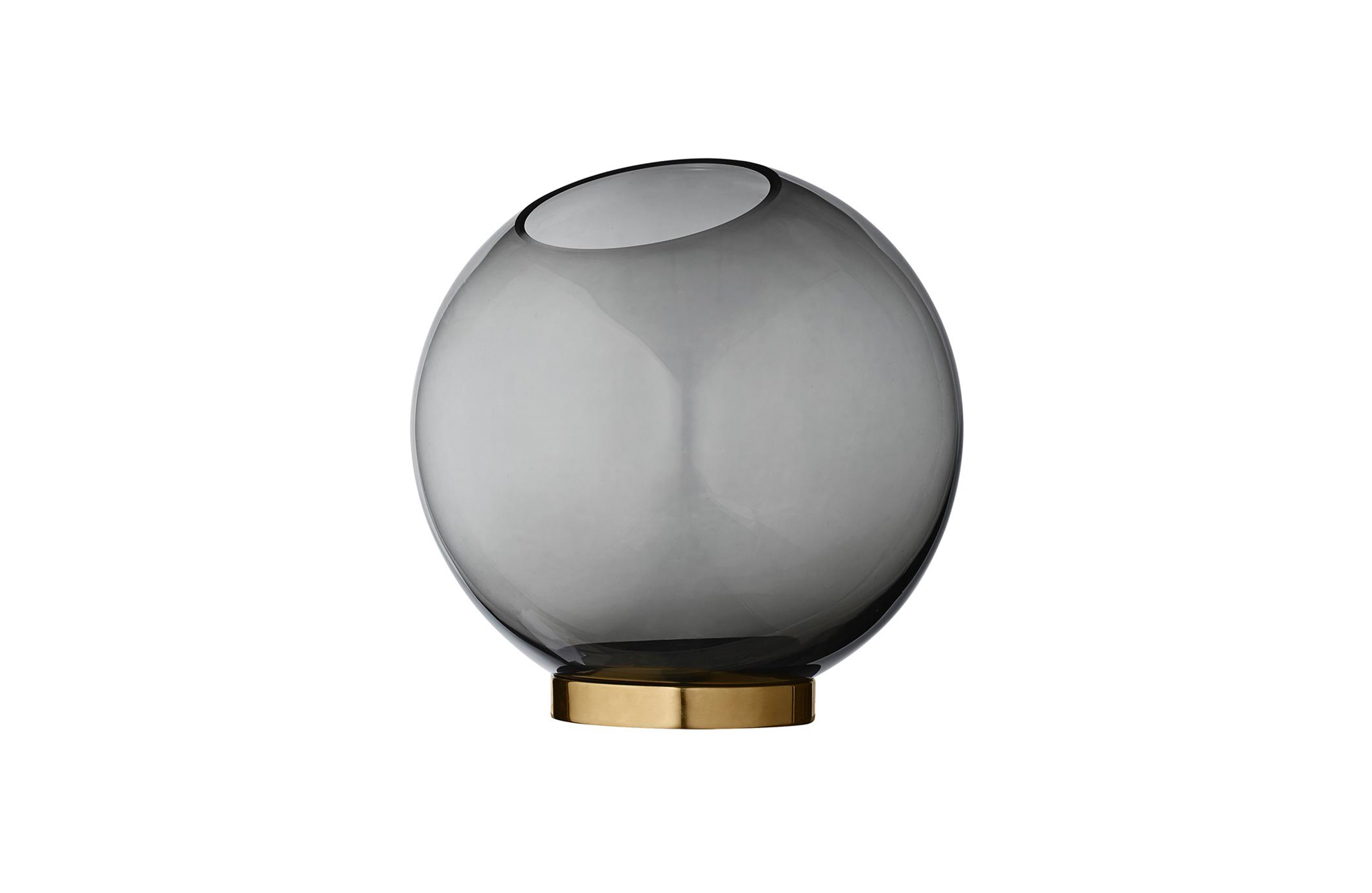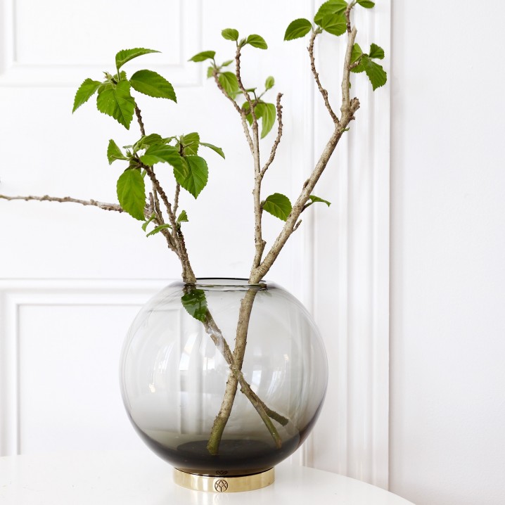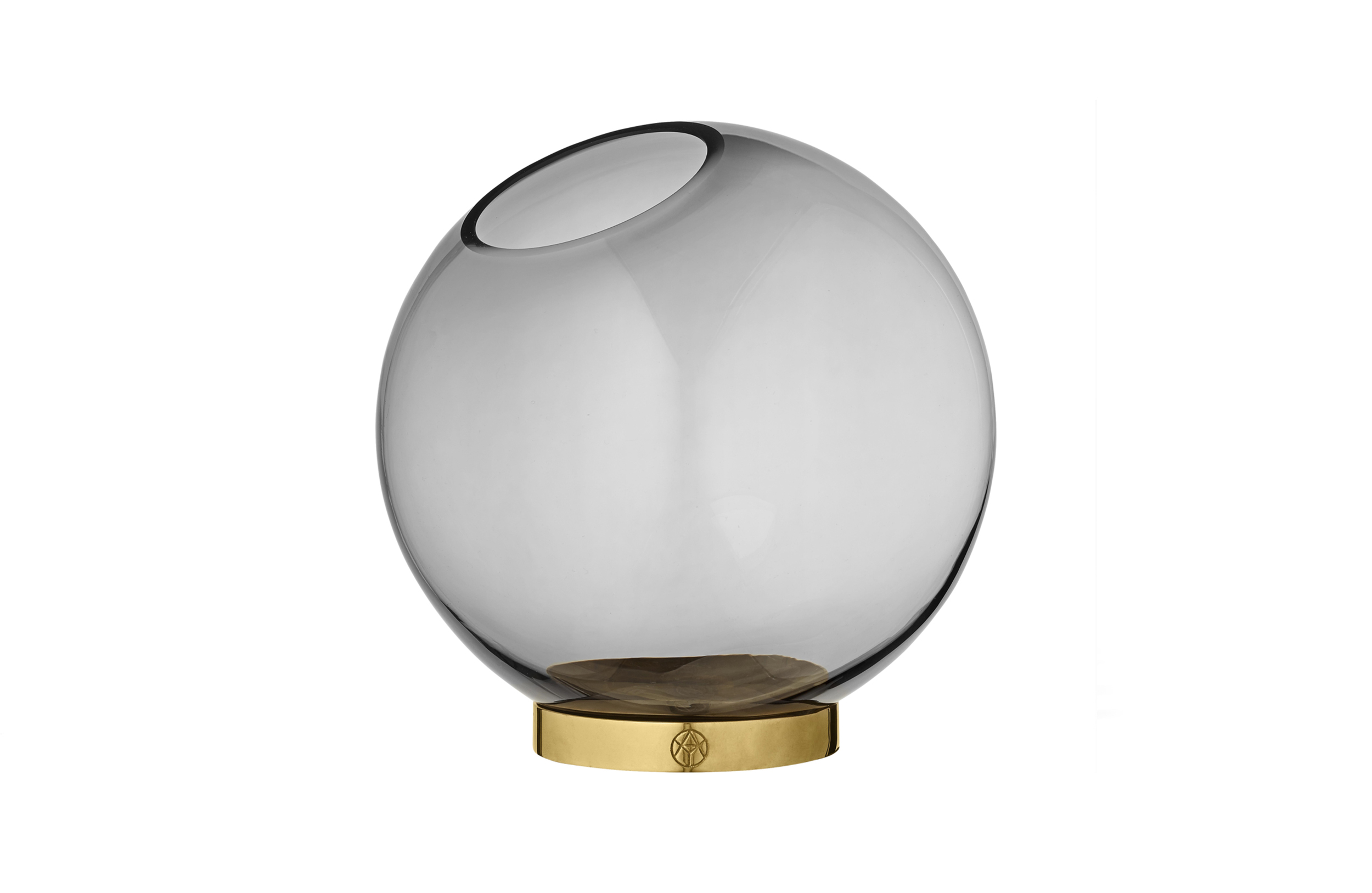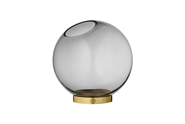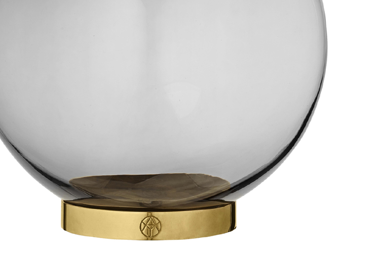 GLOBE 是一个优雅的器皿,由口吹玻璃制成,配上铜环底坐。您可以将它用作装饰花瓶或储物器皿。