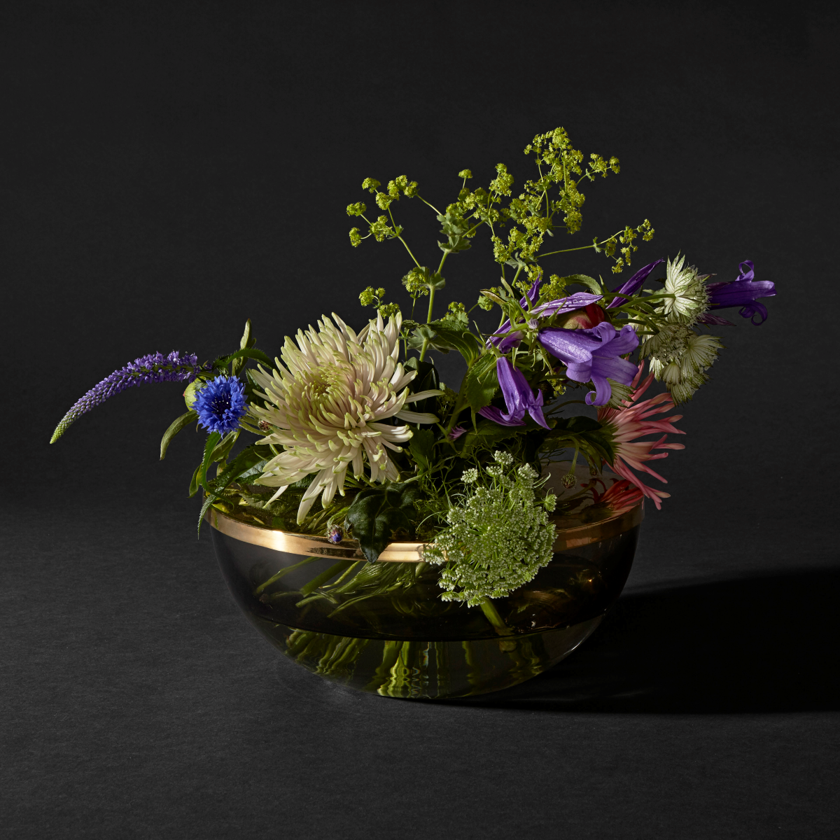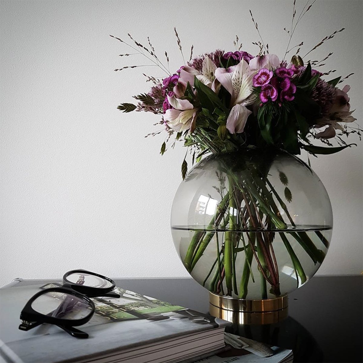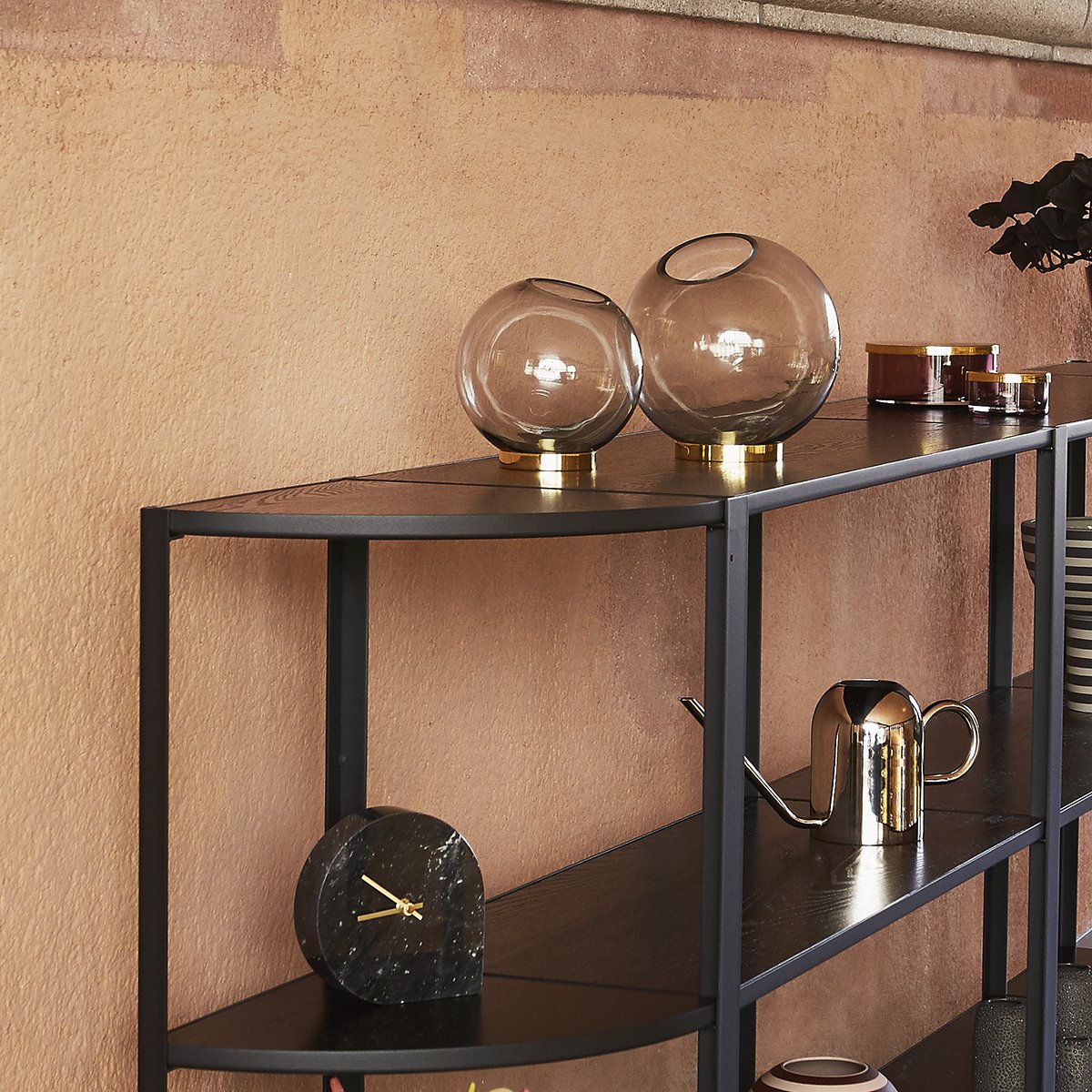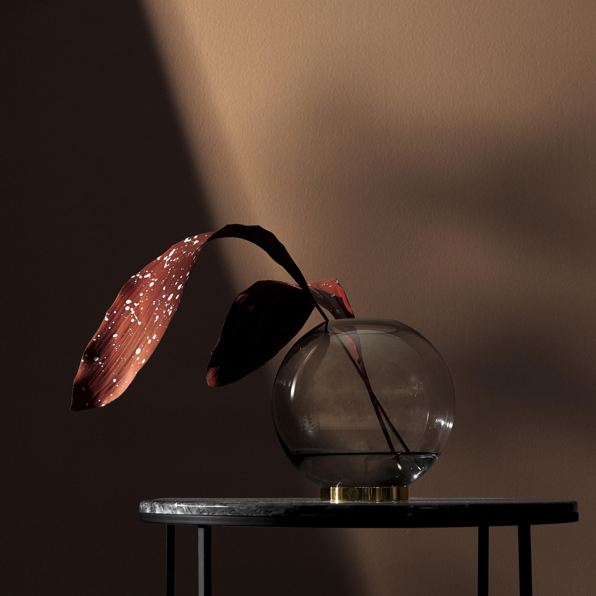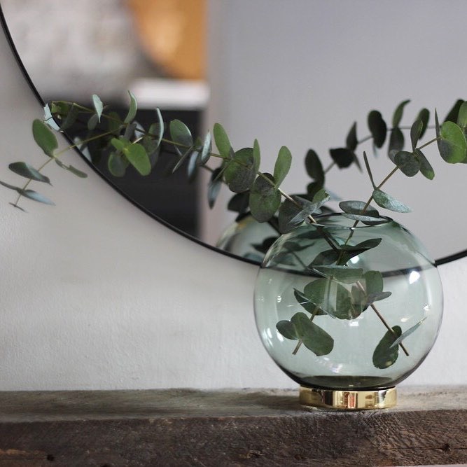 GLOBE 是一个优雅的器皿,由口吹玻璃制成,配上铜环底坐。您可以将它用作装饰花瓶或储物器皿。