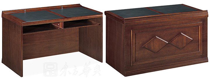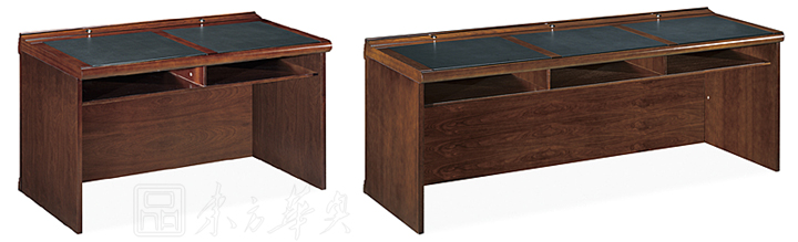 ※ 全木制结构条形桌,桌脚可做直形及弧形,下设空格储物空间,内嵌式皮垫写字板,麦克孔,满足不同需要;
