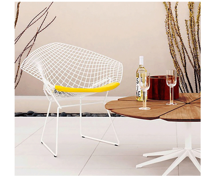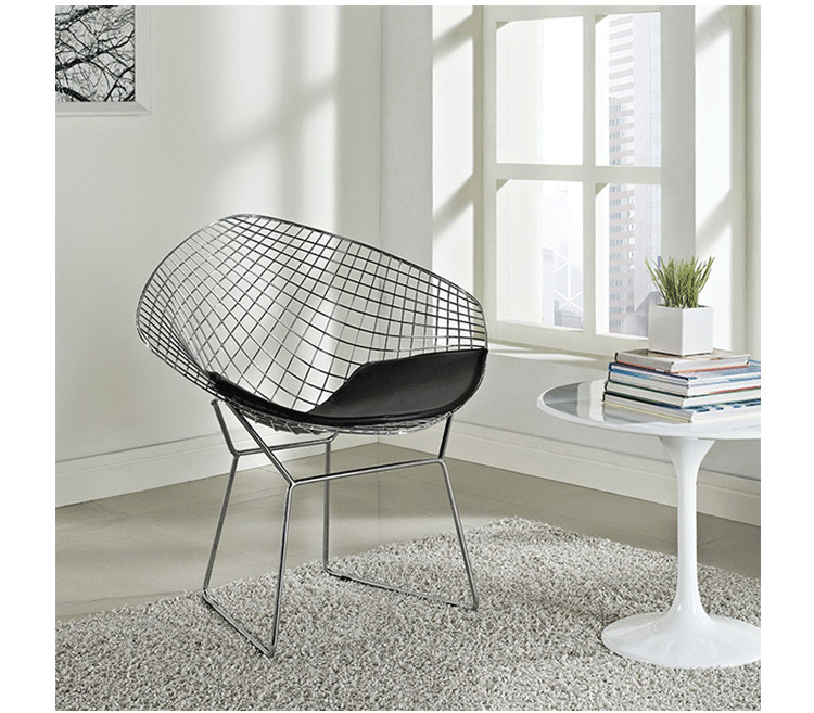 Bertoia Diamond Chair 是 Harry Bertoia 延伸其珠寶設計與金屬製作概念的一件兼顧實用與藝術的作品,精緻的外觀下,卻不失椅子功能上的舒適及耐用性