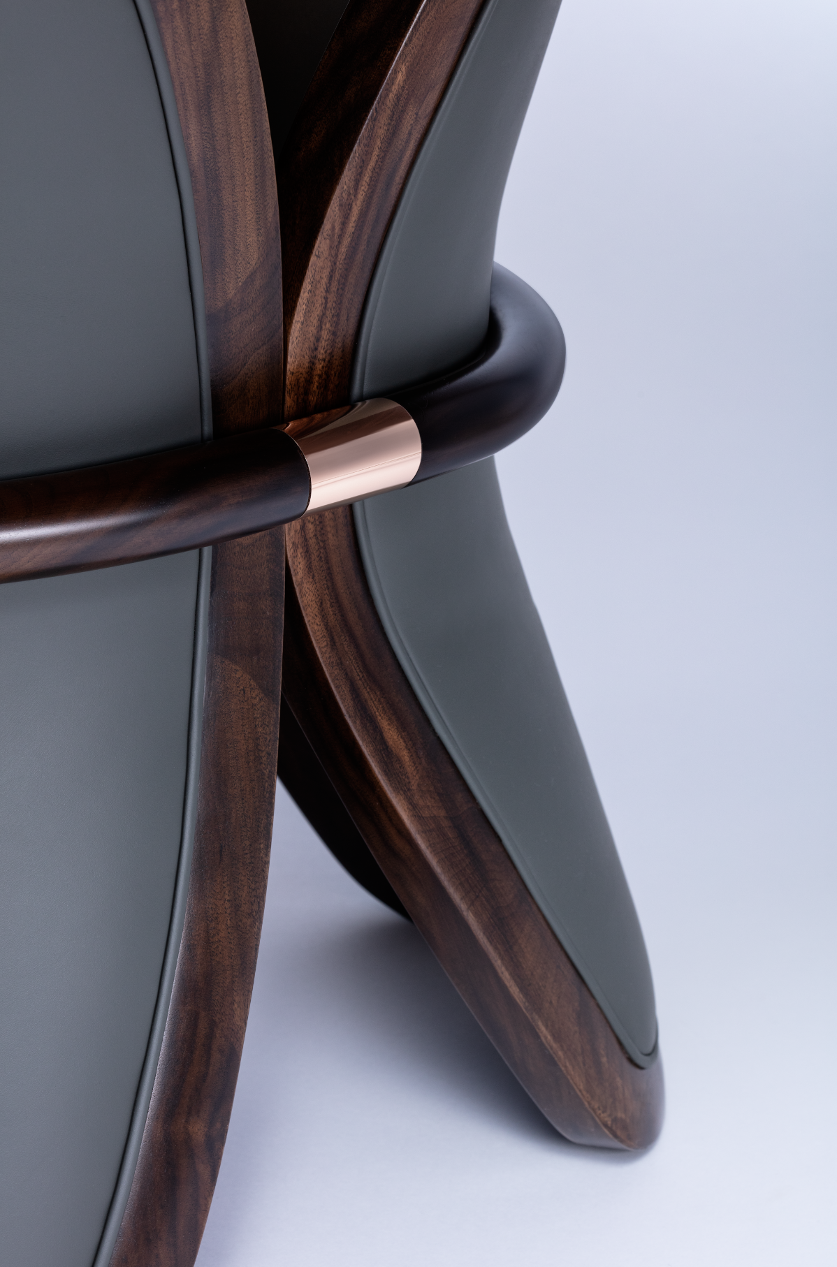 设计灵感源自于性感女士的连衣群加腰带,三片花瓣的形体,用圆紧紧系住,则寓义家人紧密团圆一起,幸福美满,生活充满花的诗意。
