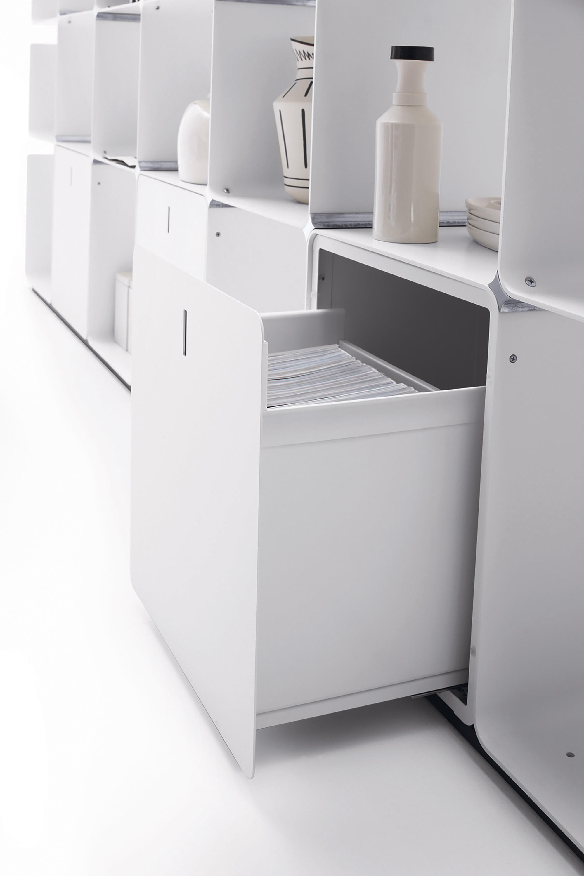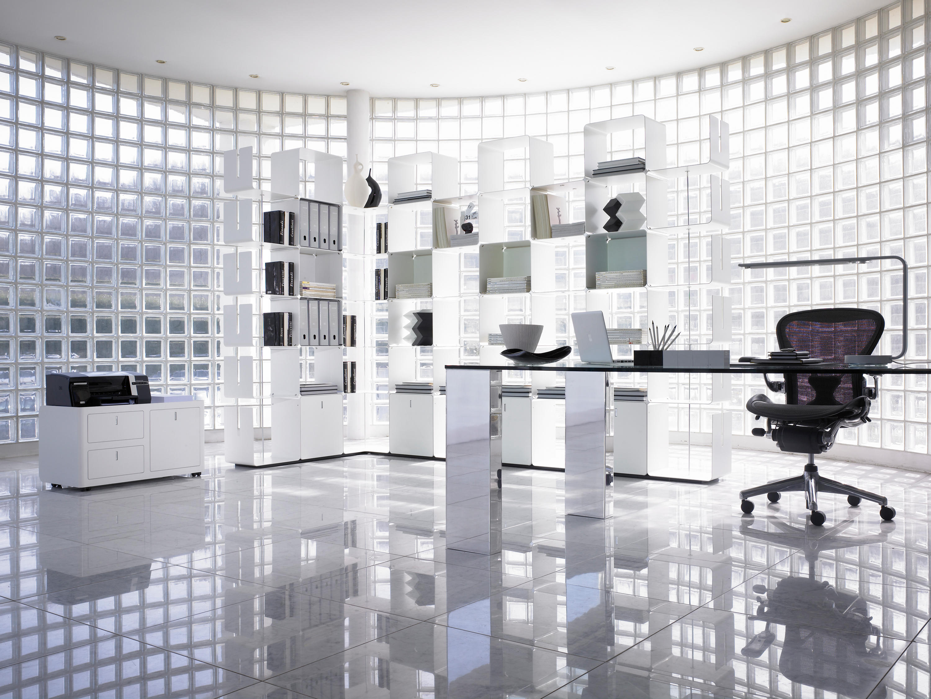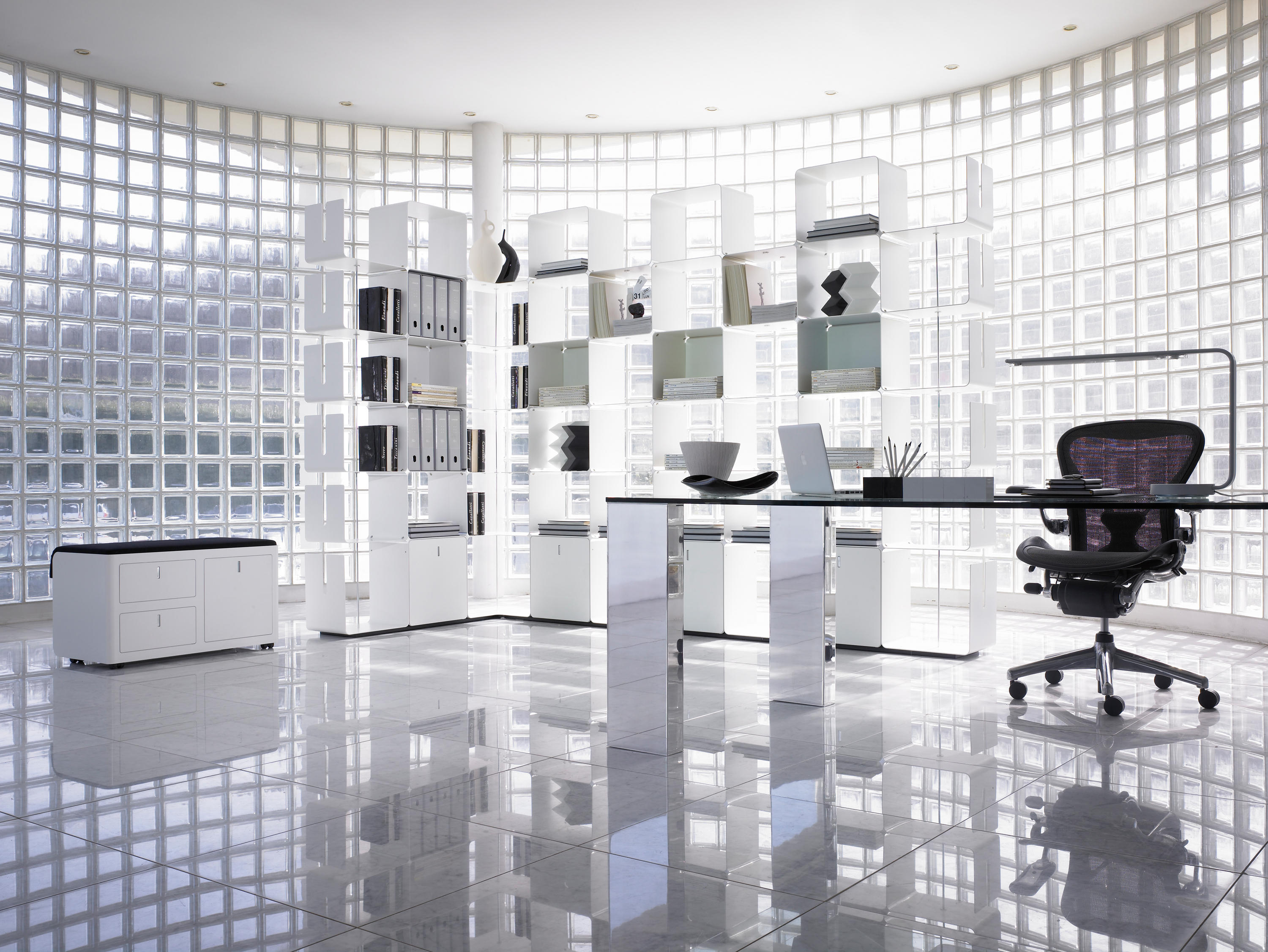 蜿蜒的和光的外观特征,使它成为当代环境中结合了货架上的功能,方便抽屉容器。 CWave似乎是由一个铝条建模本身创建一个架子优雅而且很讲究。 适合客厅,发现其理想在展览展示等环境和商店,在那里你可以创建复杂的和优雅的装饰。