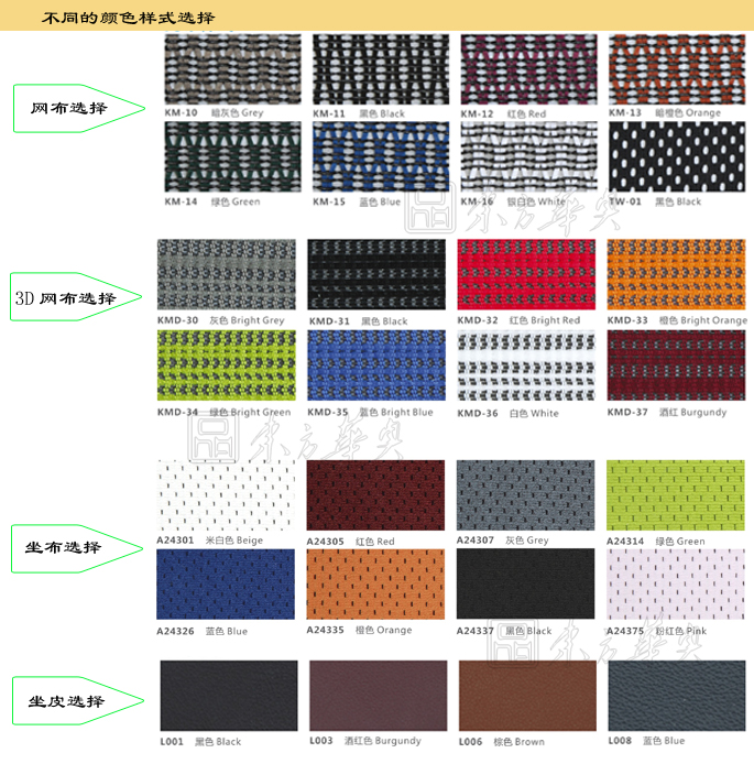 椅背、椅座均为进口网布;TPU材质腰枕,