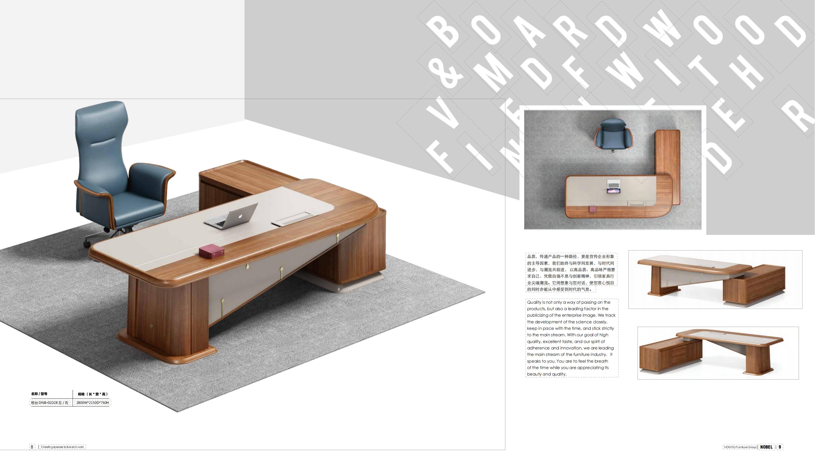 板木意式轻奢总裁系列办公家具整体完美体现了意大利轻奢美学从罗马柱中汲取灵感,流畅的曲线将金属的精致,木皮的典雅和皮革的细腻的自然融合,将各自的美妙发挥到极致,追求视觉上的极致舒适,触觉上的极度愉悦。错落有致,构造感。