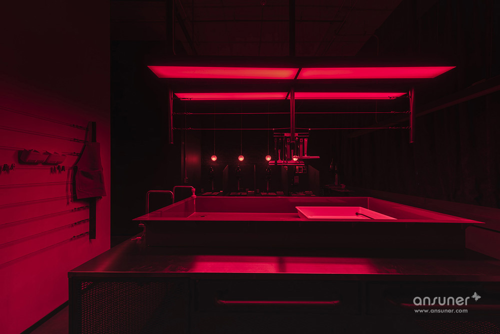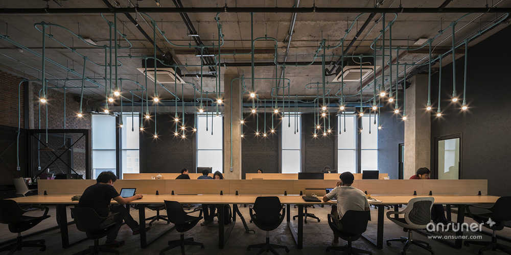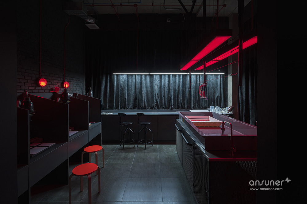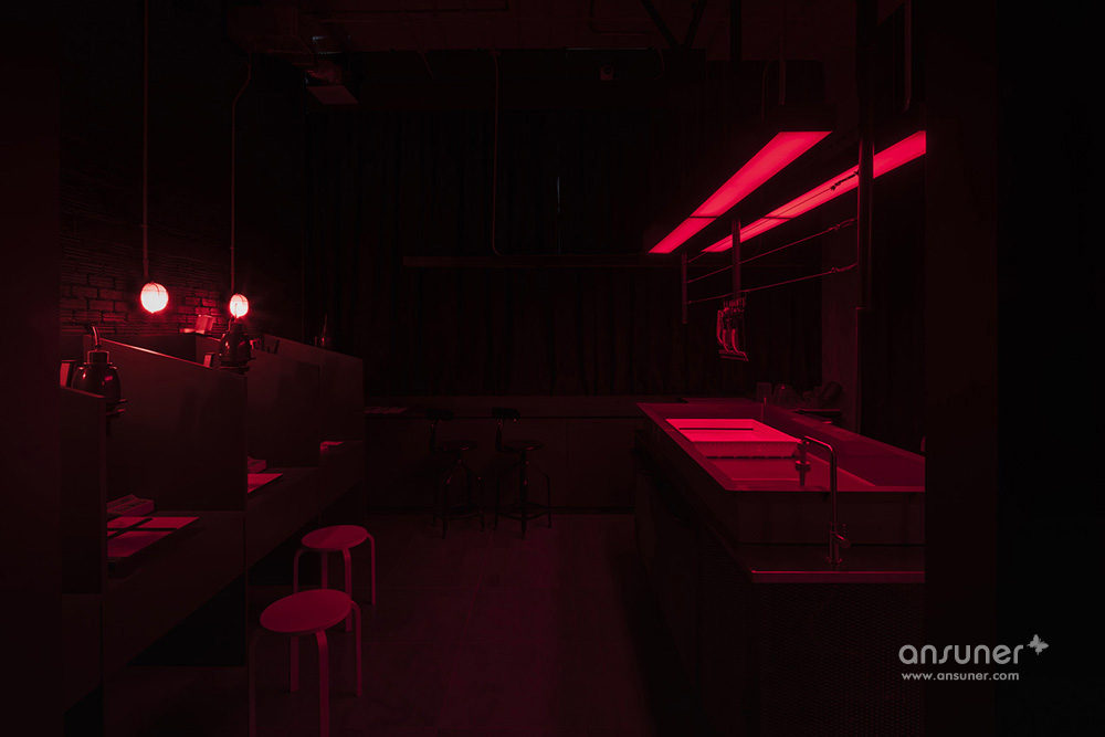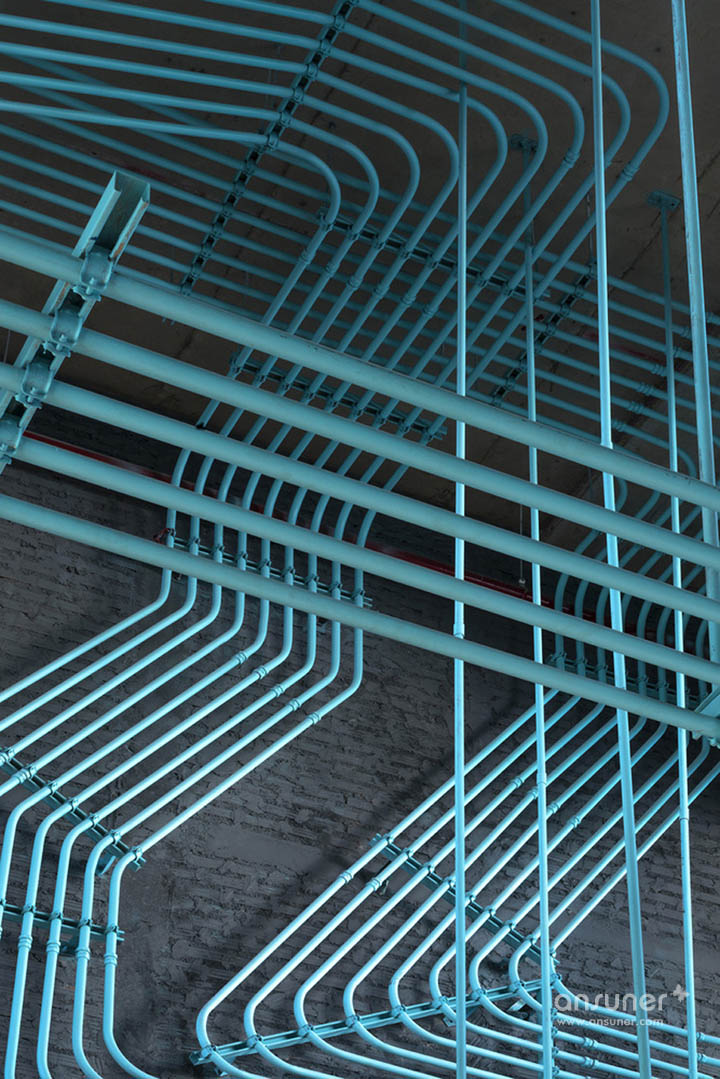 本案的设计对设计师无疑是一个创意启发。作为设计师,一直与工程中遇到的无数管线相抗争,而本案,设计团队决定利用现有的无穷管线,并刻意加以强化与夸张,从而成功塑造了独具视觉张力的魅力空间。