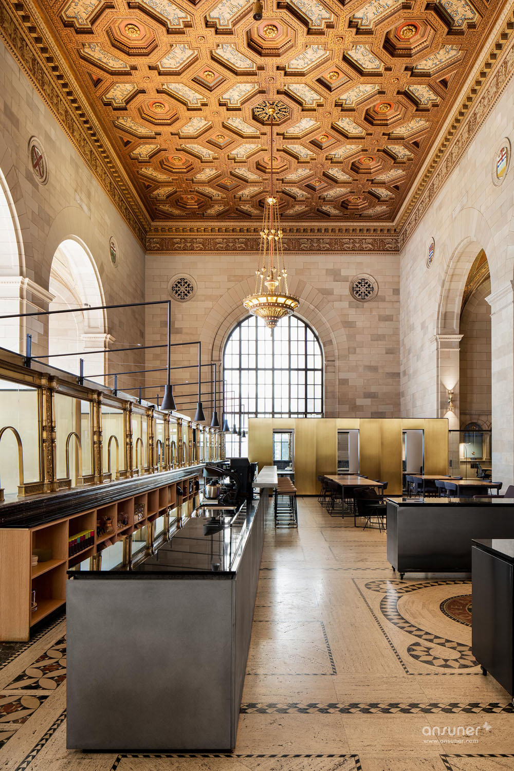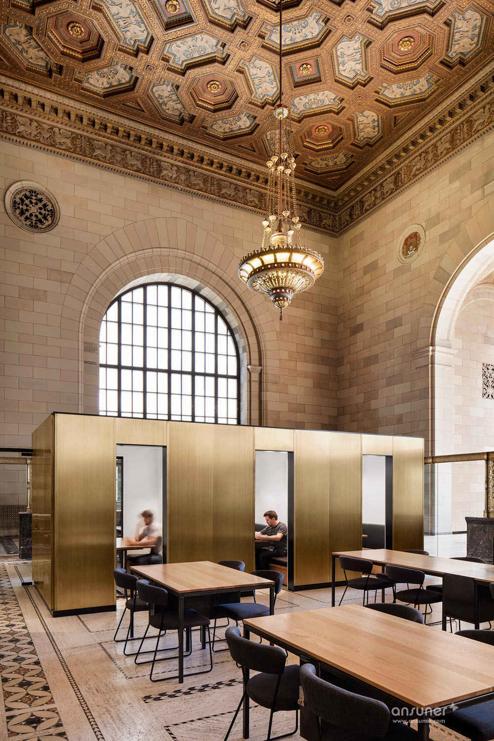 皇家银行和当年的服务柜台见证了一个时代的存在和发展,设计团队因此保留了当年的银行柜台,而这道历史见证也成为公共咖啡馆和内部工作区之间的天然屏障。
