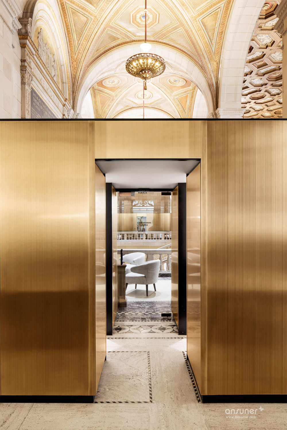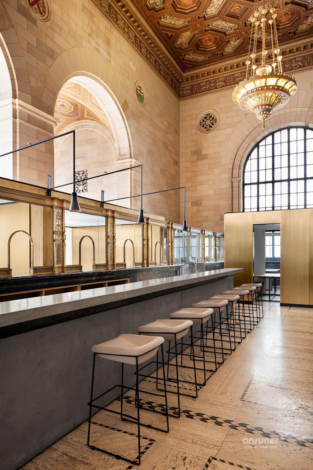 曾经的银行柜台如今化身为现代空间的一道美丽屏障,皇家银行以其深厚的文化底蕴和富于质感的精美空间,成为无可替代的空间背景。对历史建筑的重新定义可以让其再现辉煌。