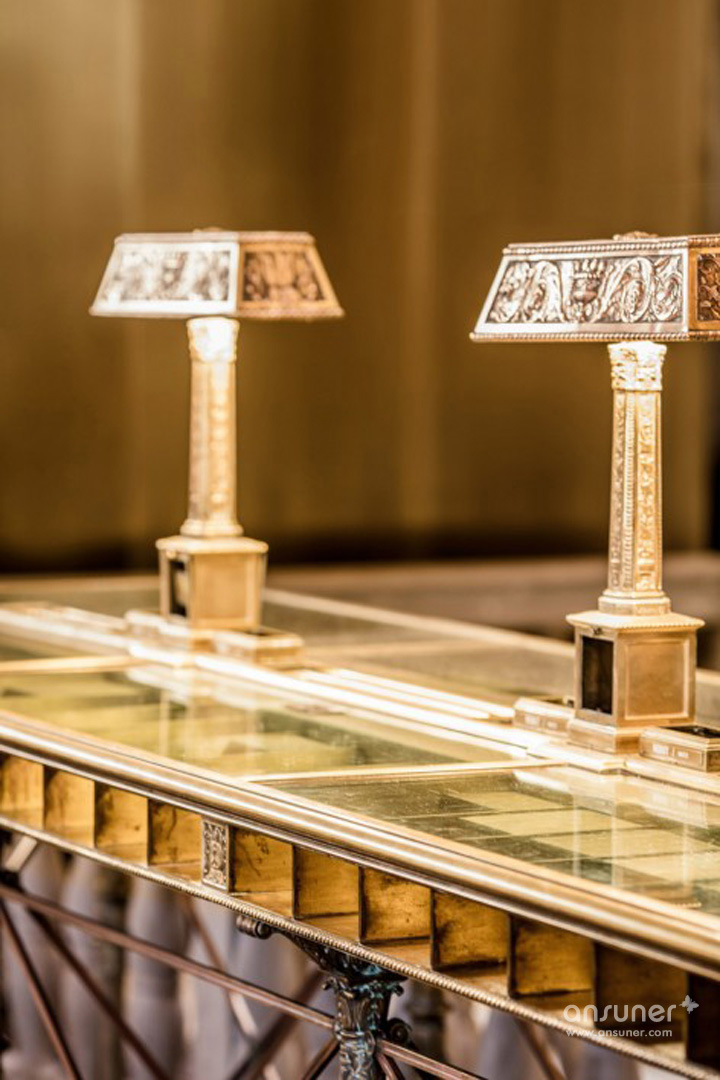 精美的大理石镶嵌地面、华丽的彩绘天花藻井、以及当年定制设计的黄铜吊灯,都经由专业人员的修复和重新上色,再现壮观而华美的奢华皇家气质。
