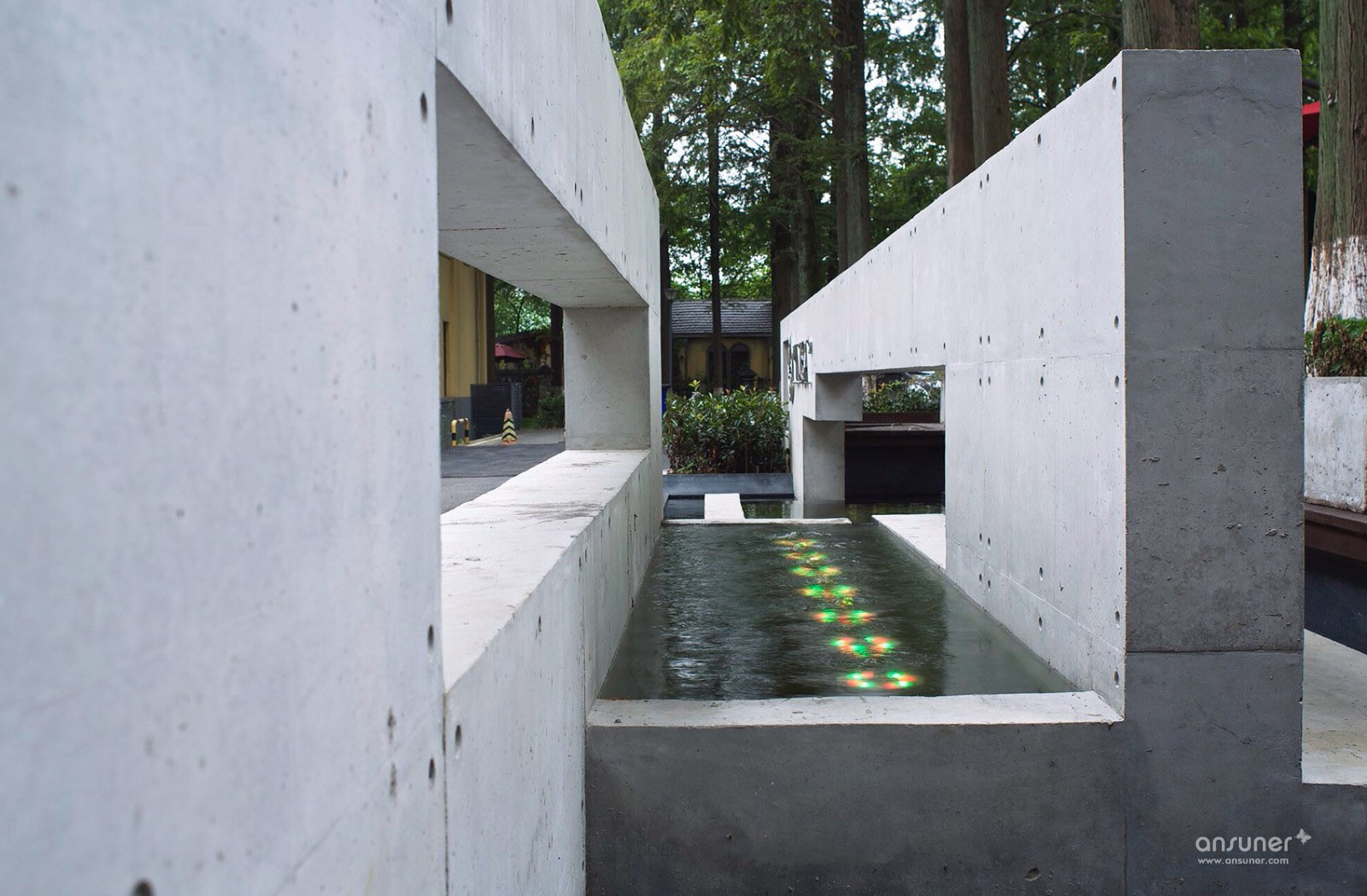 望板上的屋漏痕在诉说着一件件精彩的故事,经历了时间洗礼的望板,仿如一面宋画的绢布背景,若在望板上稍加点缀,寥寥数笔生灵与之交流,便可以形成一幅宋画意向,同时也与项目甲方诉求吻合,整个空间要有家的感觉。燕归巢是对家最贴切的诠释。我们的设计策略是对老建筑的精神延续与衍生,保持原有建筑空间的质量,而不是生猛的冲突。木桁架经过时间的洗礼,斑驳中有时间的印迹,与树脂板建筑材料之间的微妙碰撞,造就了时光交错的印象。我们寻找原来的建筑结构的逻辑,增加剪力墙与柱梁来对原有墙面与屋顶进行加固。同样利用了清水混凝土做结构并摒弃装饰面,让建筑语言之间交流更为流畅。建筑与自然之间的有趣的边界称之为灰空间,建筑的主入口正是这样的模糊边界空间。水杉树庭院与室外庭院,主入口之间形成这种叙事关系。
