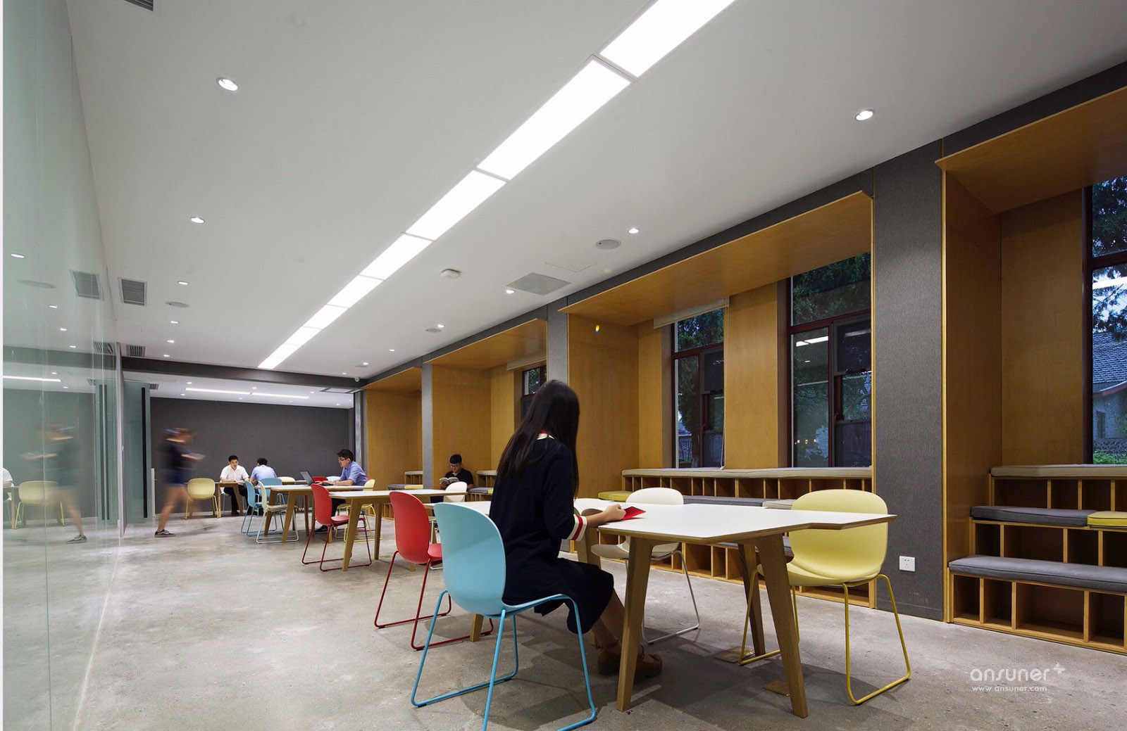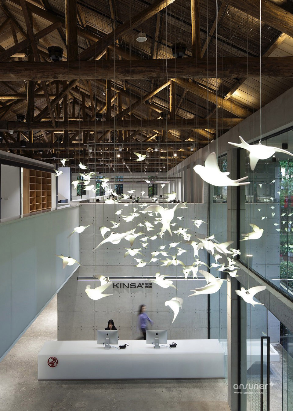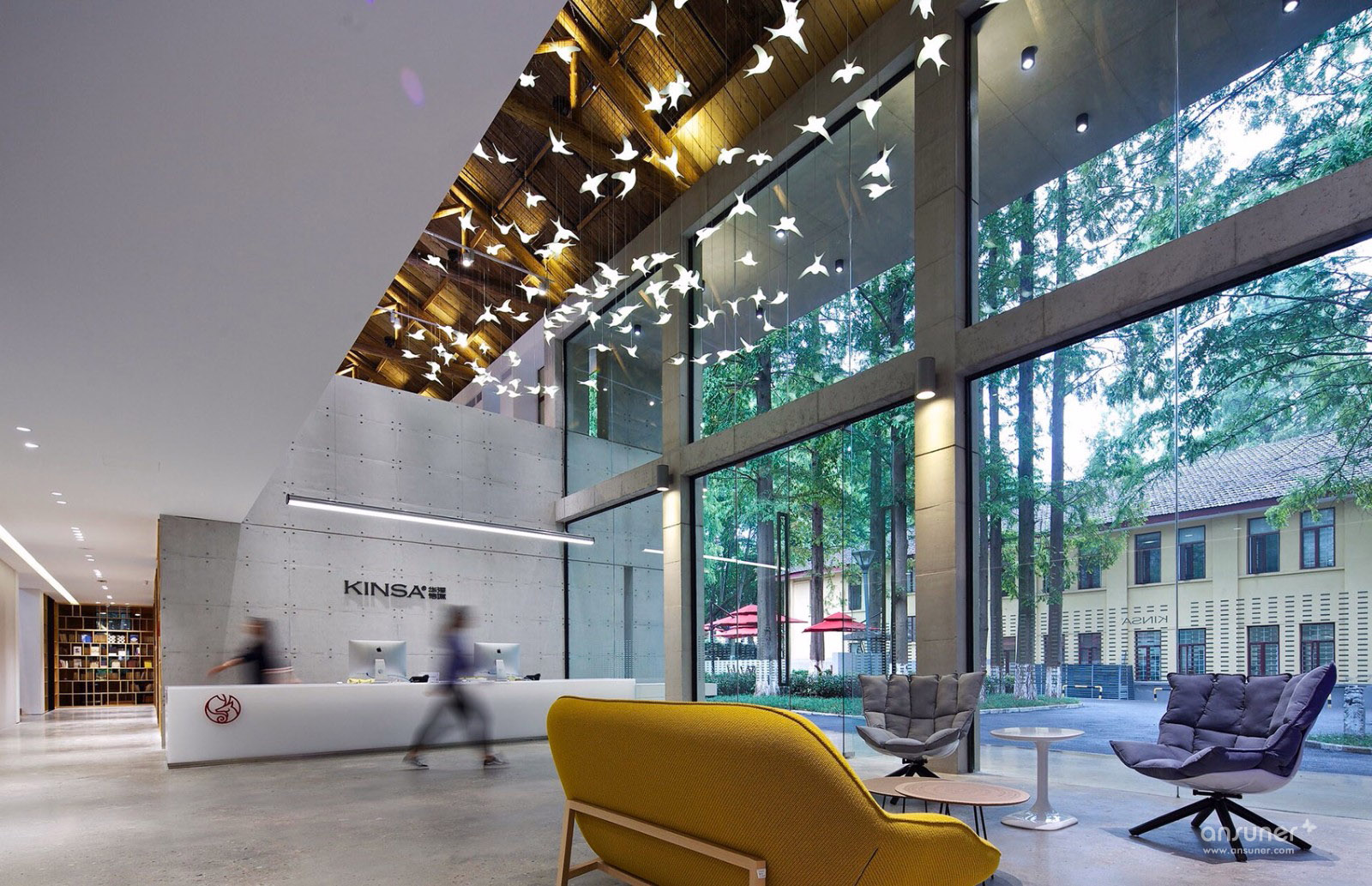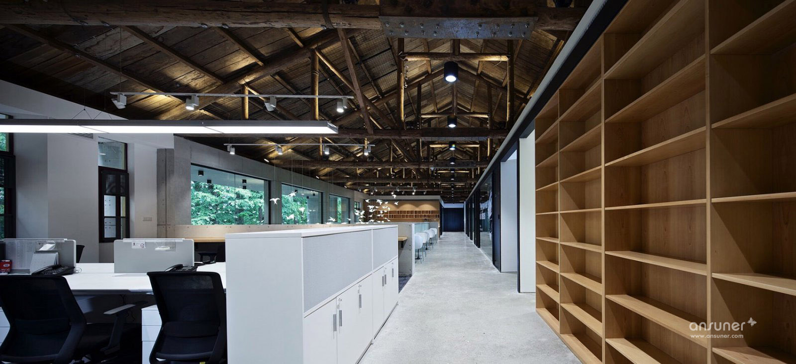 华泽传媒办公总部位于南京T80创意产业园,前身是民国时期中央政治学院,规划设计、建筑设计均由华盖建筑师事务所设计。民国时期西方文化对中国本土文化影响至深,南京作为民国政府首府更是文化交流甚密之地。T80创意产业园区就是典型的代表,传统木桁架坡屋顶与砖混结构结合,形成大跨度的教学使用的弹性空间。同时也是特殊历史时期,有志向的建筑师们对于建筑设计上的大胆尝试。