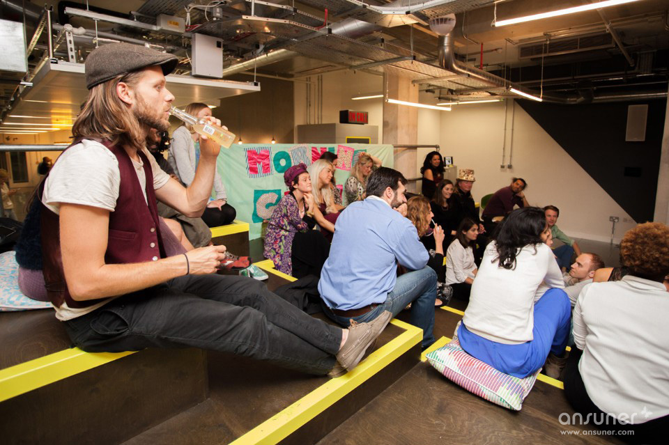 ▼“空中课堂”,讲座和演示的地方,这里有着雕塑般的吸音吊顶设计;共享空间 伦敦Huckletree联合办公设计欣赏