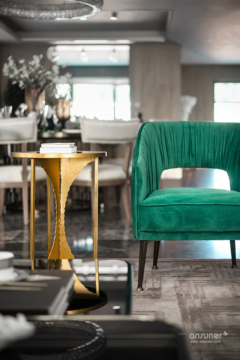 “在我看来,文化的自信与东方设计的回归,不应该仅仅停留在符号、图案、款式、线条的表面异变......甚至,在艺术与审美上,东方和西方并非泾渭分明的。”她说:设计以玉石之王翡翠的色彩,应用于灰色的主调空间,以丰富的家居配饰元素、鲜明的色彩层次及质感的材料运用,呈现了浪漫、灵动的空间之美,让这个五层的别墅呈现了绝美风华。