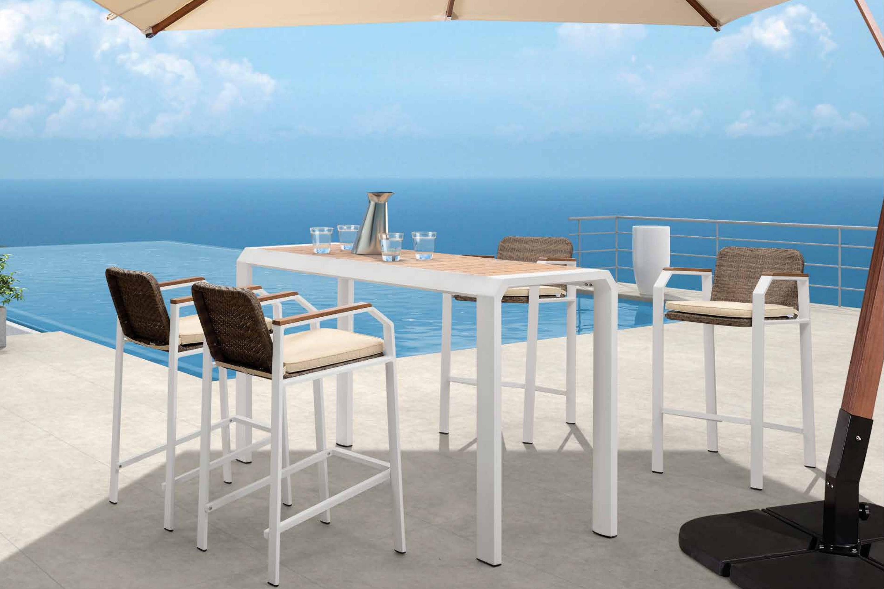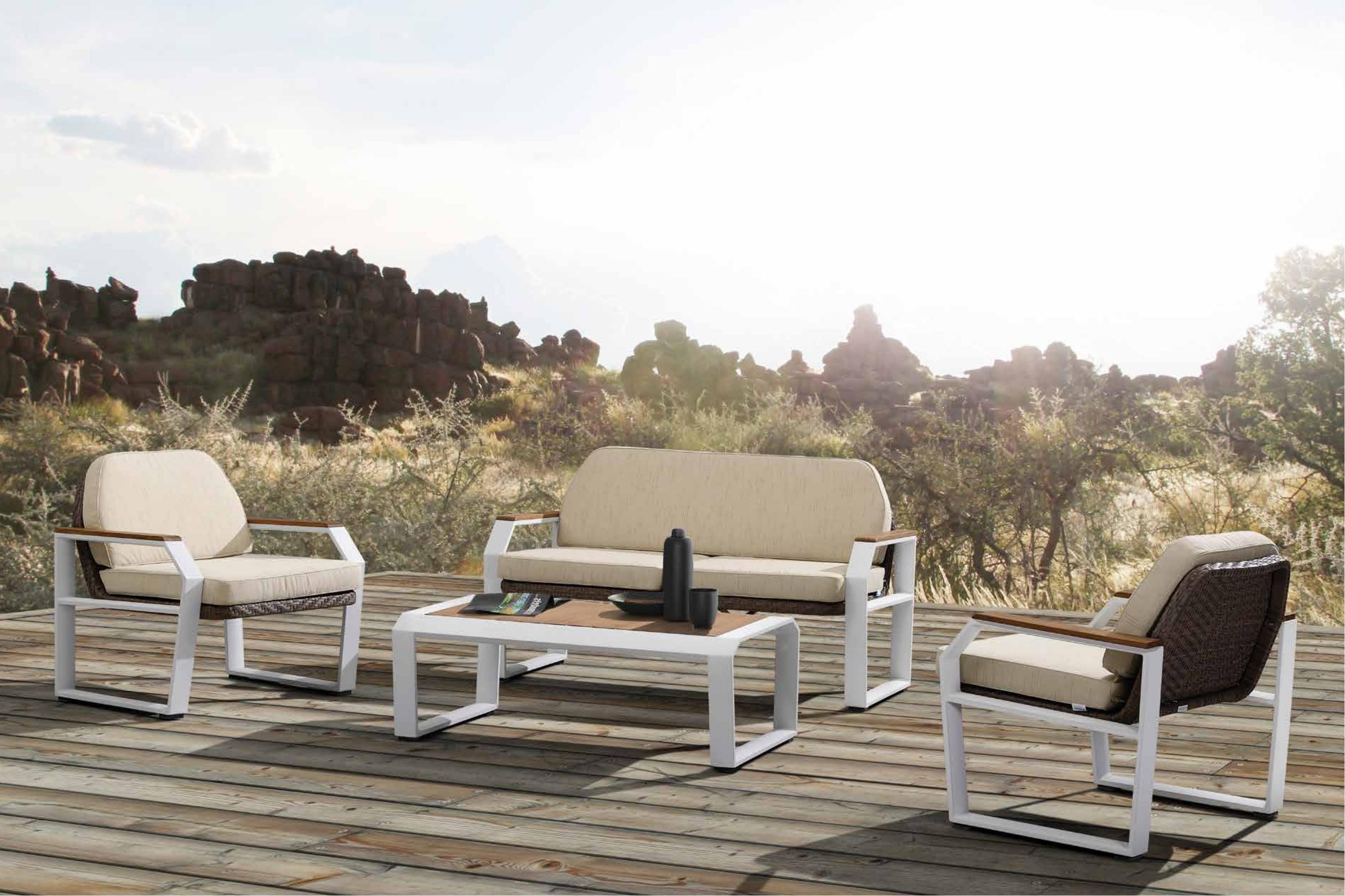 缇可曼户外休闲系列将体现自然的木色用得恰到好处,柚木的扶手和桌面,经历了工匠精心的裁切打磨,呈现出原木的精髓,在户外的阳光里,享受了阳光照耀,连触感都有了木质特有的温润,让人慵懒而放松。